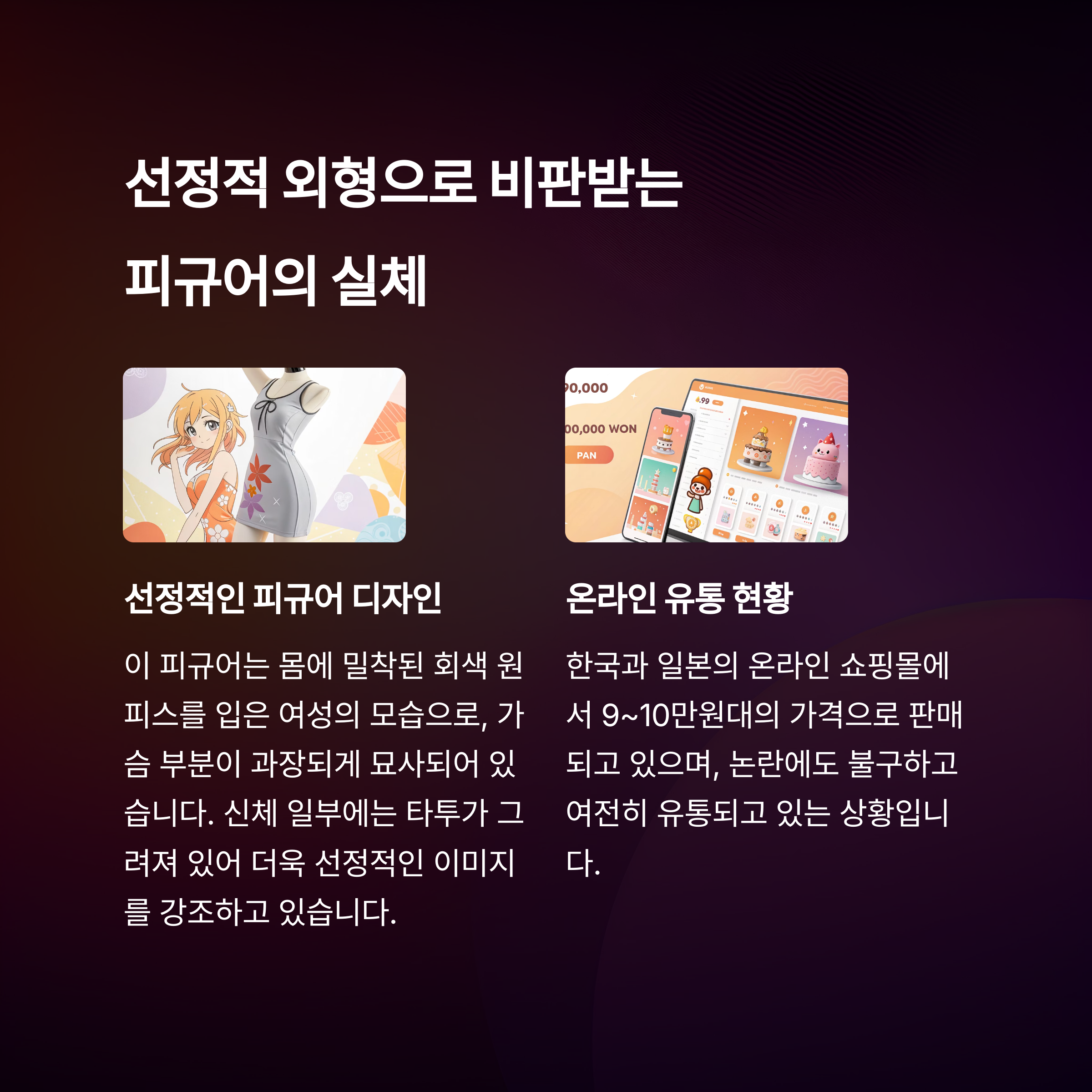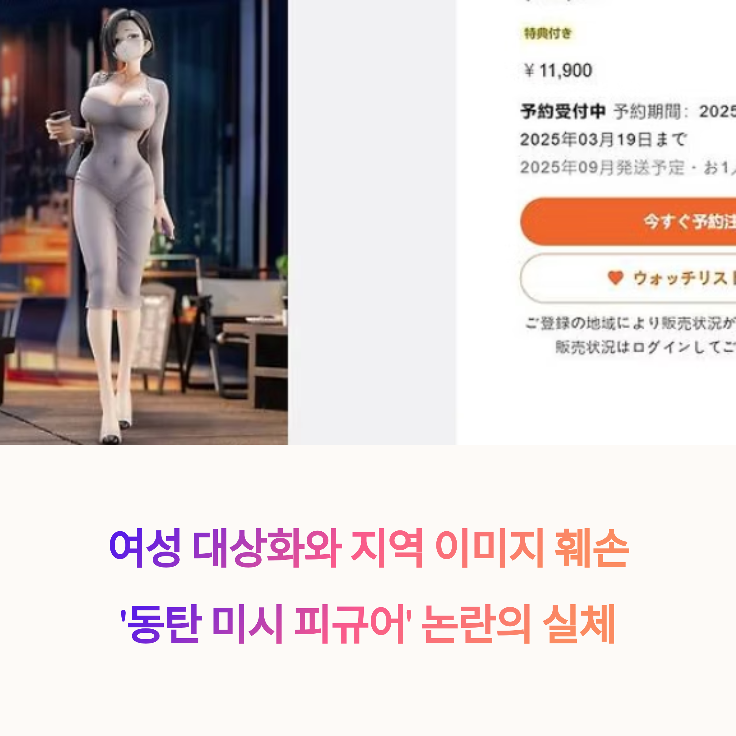 안녕하세요. 오늘은 최근 온라인 커뮤니티와 SNS를 중심으로 불거진 ‘동탄 미시 피규어’ 논란을 살펴보려 합니다. 자극적인 외형 묘사와 지역명을 결합한 이 상품이 여성 성적 대상화와 지역 이미지 훼손 문제로 커다란 반발을 일으키고 있는데요, 단순히 ‘밈’이나 ‘유머’로 소비되기에는 그 파장이 가볍지 않아 보입니다. 해당 피규어의 상품 설명, 소비 방식, 그리고 표현의 자유라는 이름으로 어디까지가 허용되고, 어디서부터는 책임이 따르는지... 이번 논란을 통해 우리가 함께 고민해봐야 할 사회적 메시지를 하나씩 짚어보겠습니다.