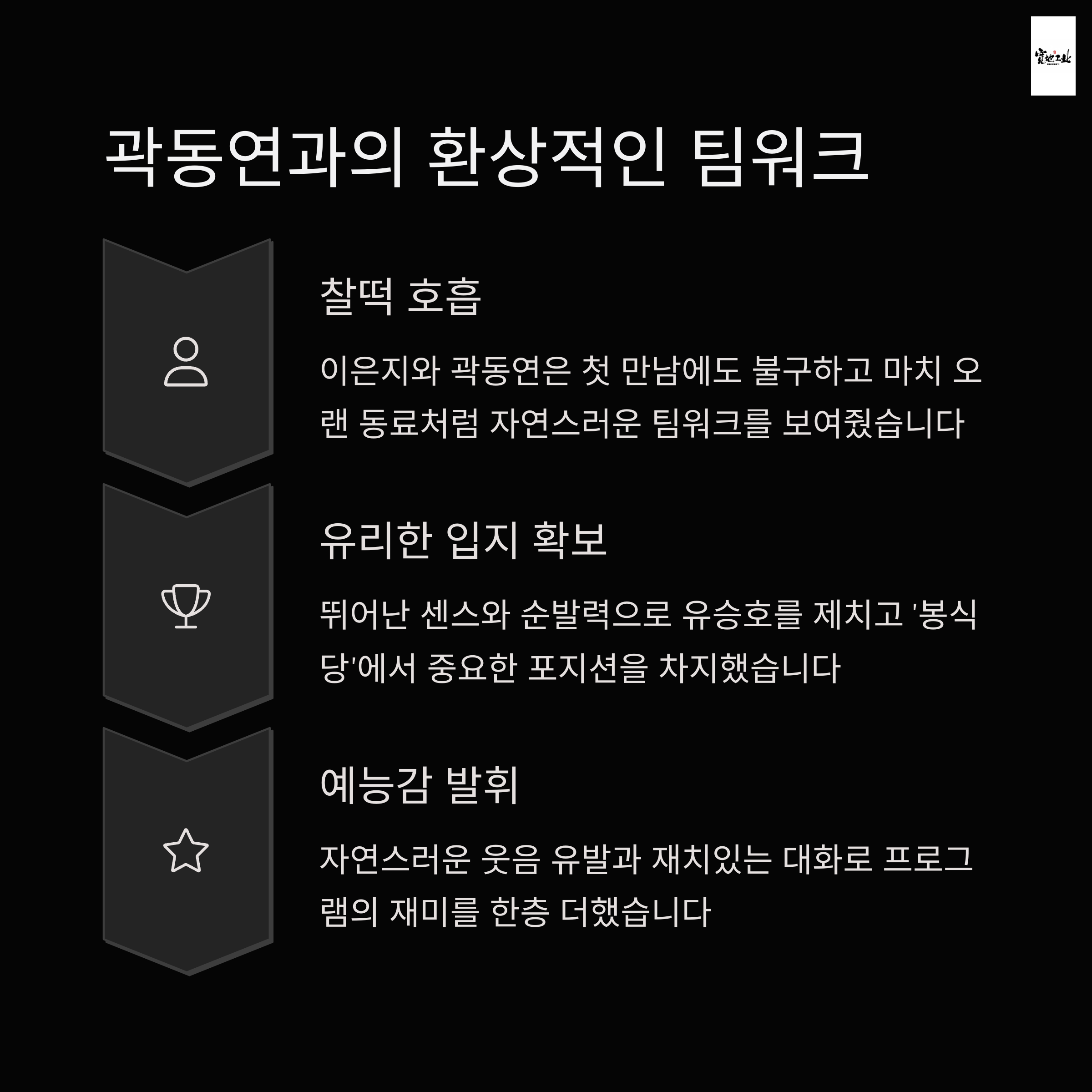 시청자들 사이에서도 찰떡호흡이라는 반응이 많았어요. 진지한 곽동연과 유쾌한 이은지의 조합이 의외로 잘 어울립니다.