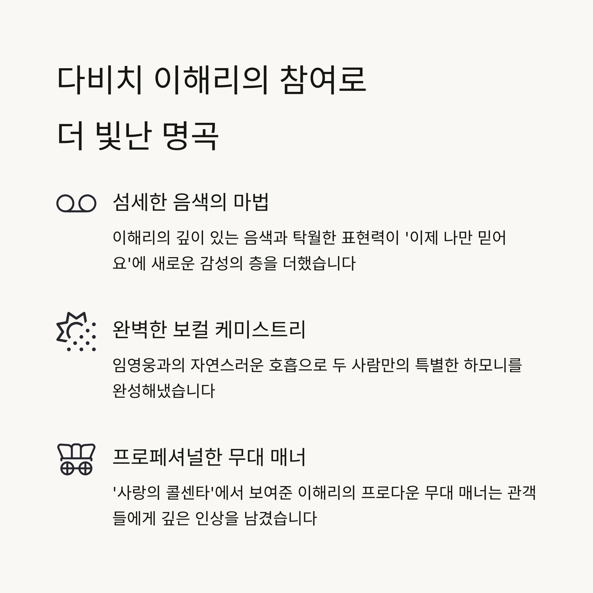 - 솔로 무대에서 보기 힘든 듀엣 감성 연출