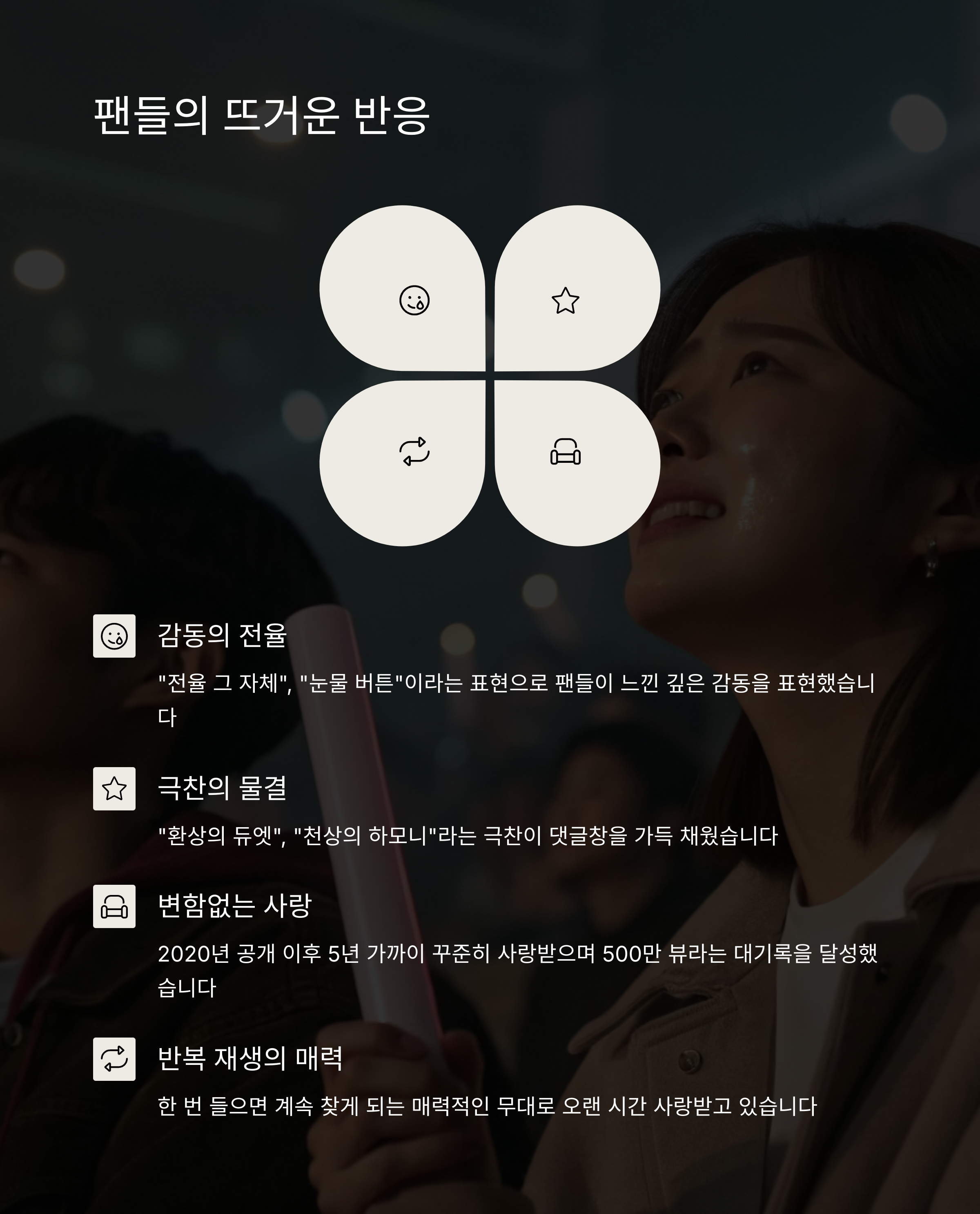 - “듣는 순간 울컥했어요. 요즘도 매일 듣습니다.”