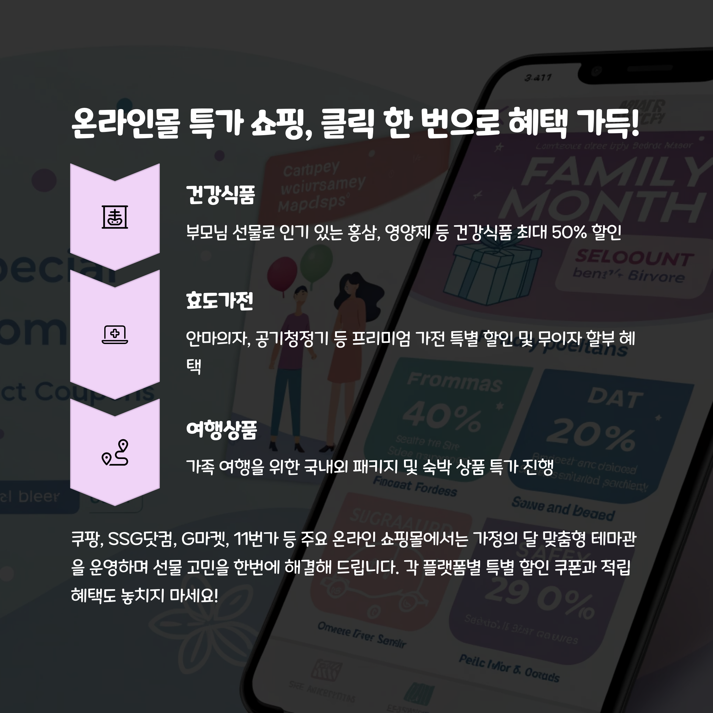 올해 가정의 달 준비는 한층 수월했어요. 이렇게 다양한 프로모션과 혜택을 미리 알고 준비하니, 마음의 부담도 줄고 선물 고르는 재미도 커졌답니다. 특히 어린이날 완구나 어버이날 건강식품은 인기 품목이라 서둘러야 한다는 걸 절실히 느꼈어요. 이번 5월에는 사랑하는 가족과 함께 더 많은 시간을 보내고, 똑똑한 쇼핑으로 마음까지 따뜻하게 채워보세요. 여러분도 행복한 가정의 달 보내시길 진심으로 바랍니다!
