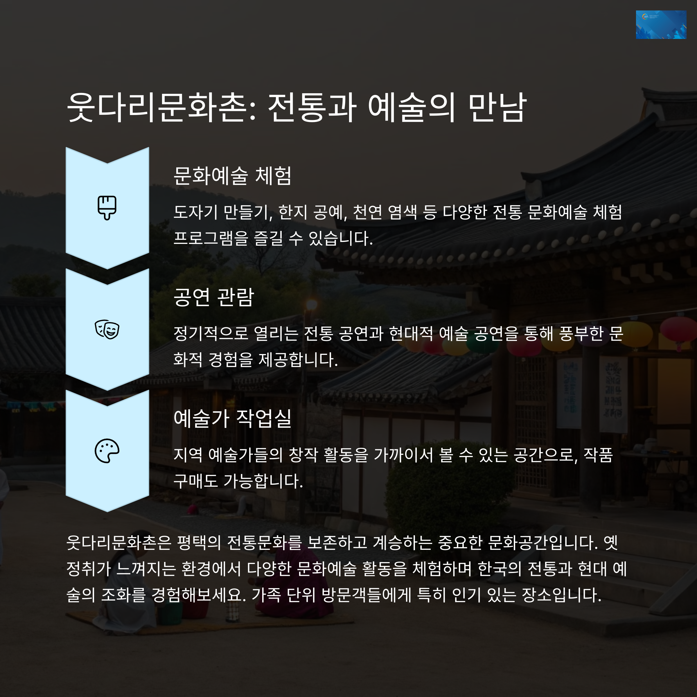 3. 웃다리문화촌 – 예술과 체험의 마을