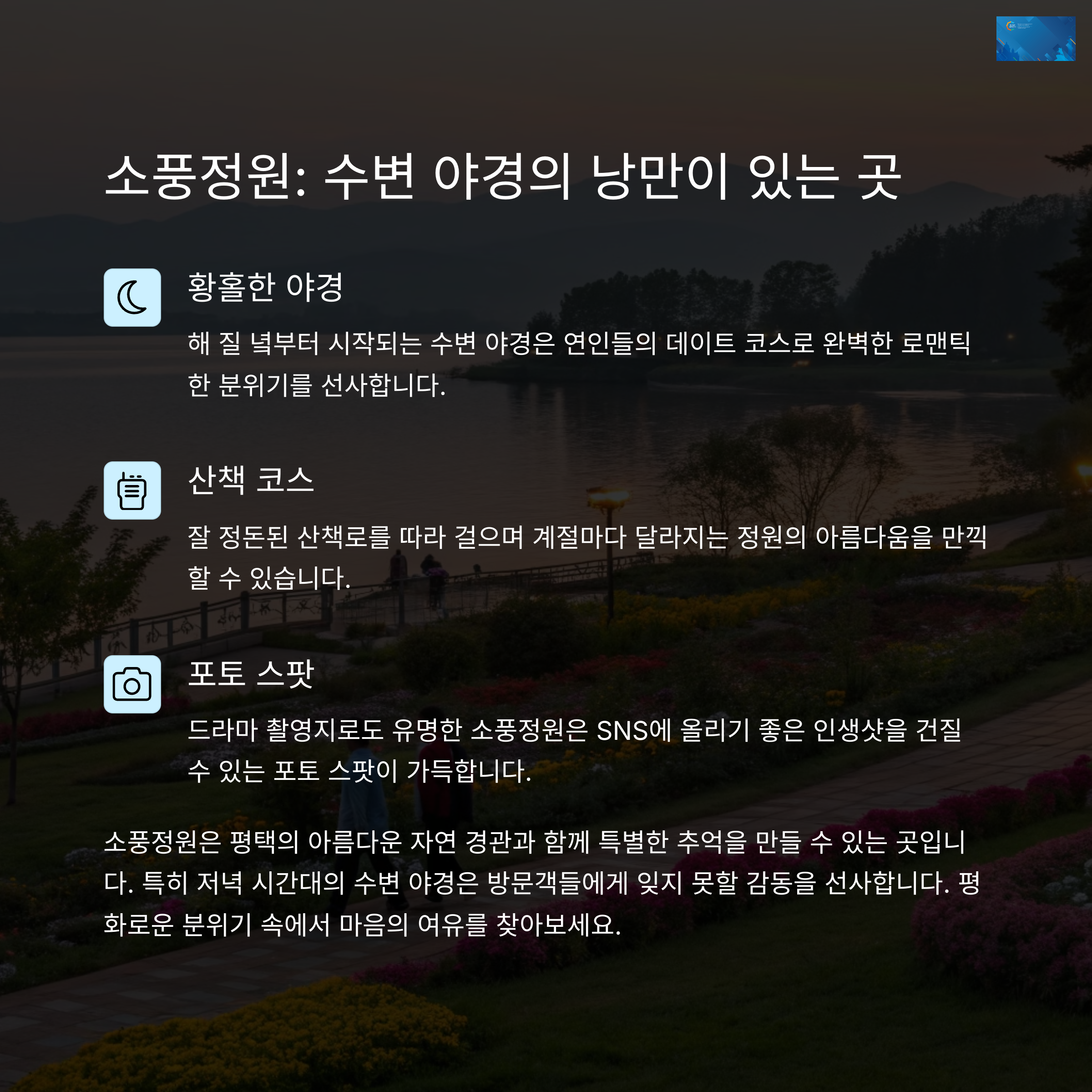 2. 소풍정원 – 수변 산책과 감성 야경