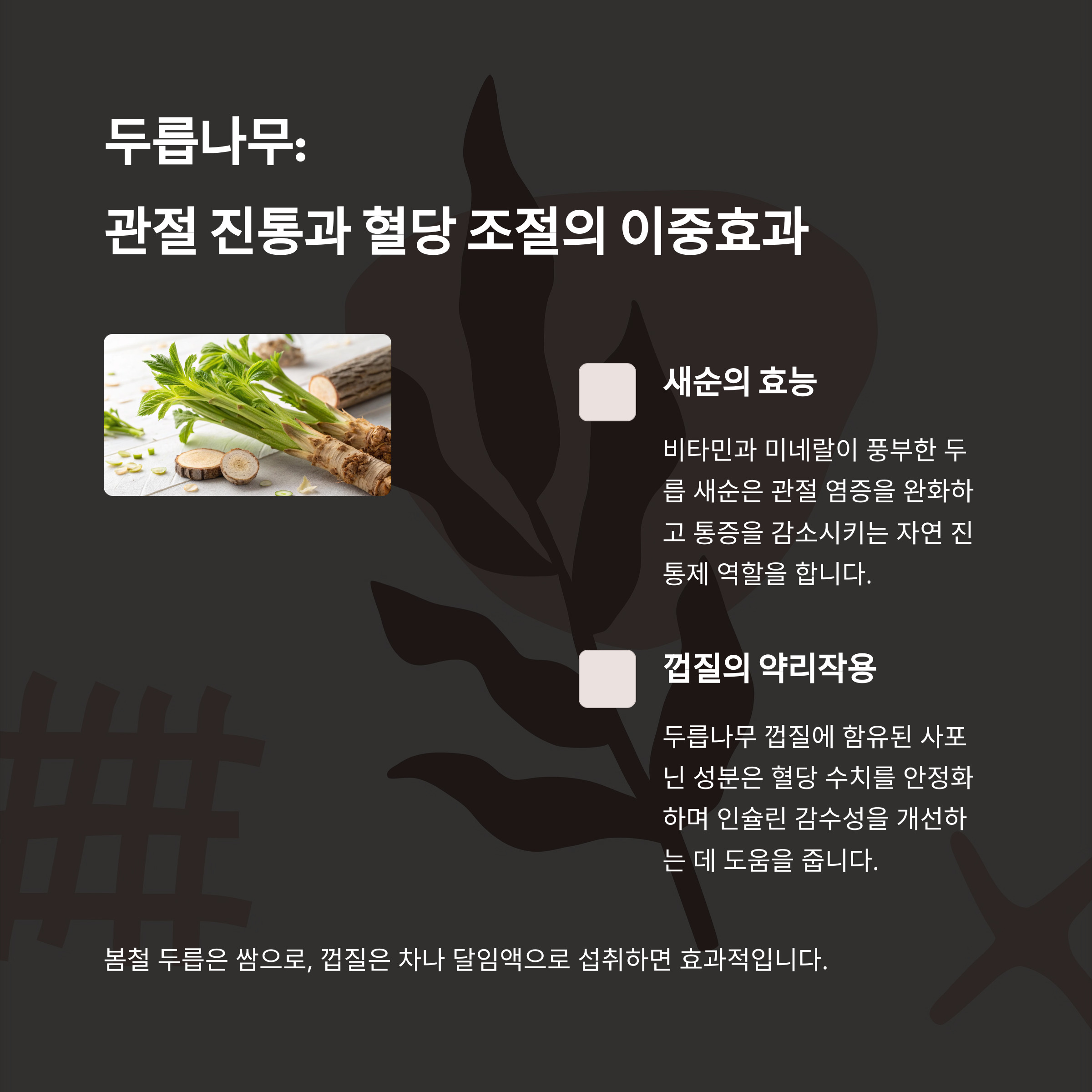 | 봄의 산채왕, 두릅나무의 놀라운 효능과 활용법 (0) | 2025.04.18 |