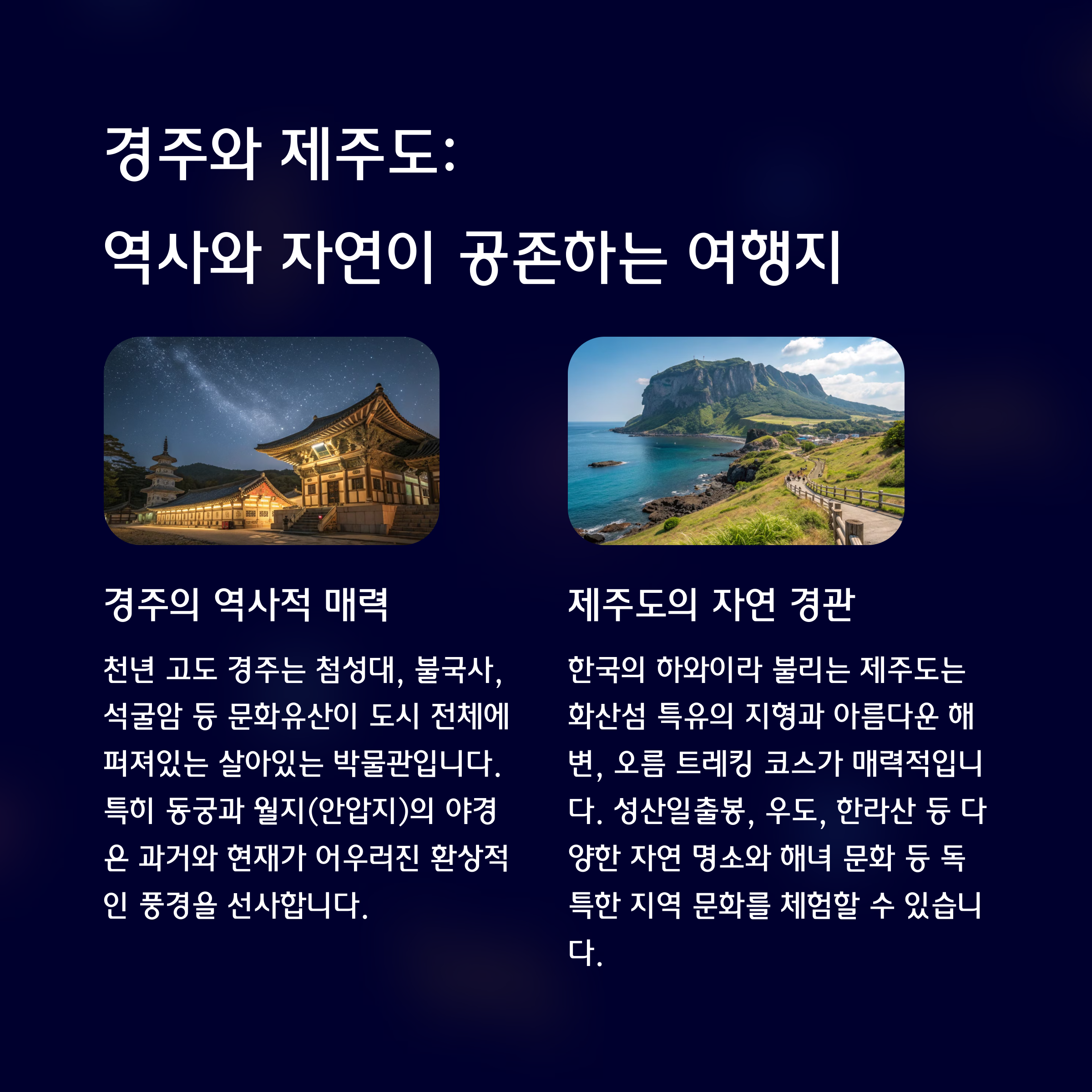| 경주 | 역사, 야경, 전통 | 커플&감성여행 |