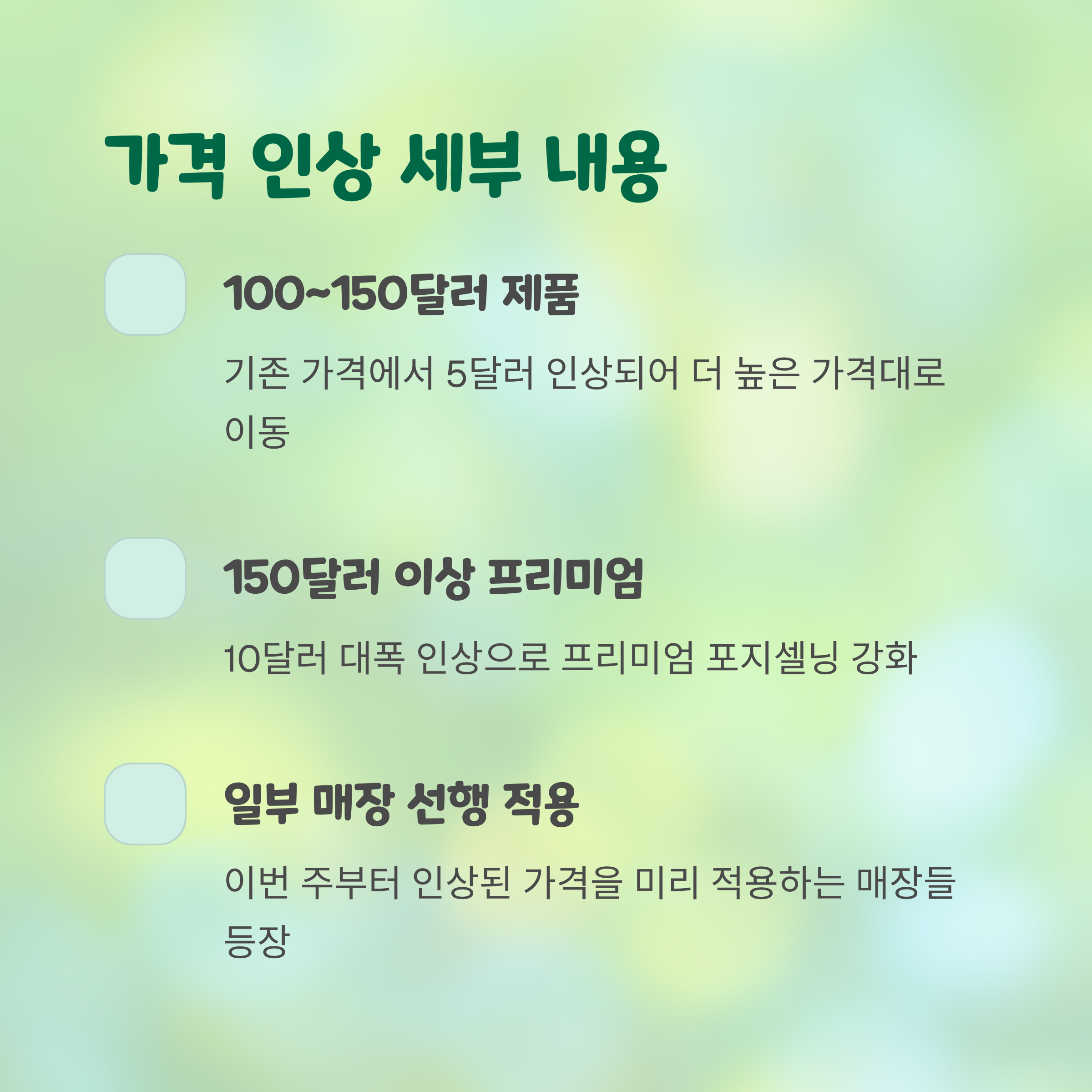| 가격 인상 | 프리미엄 브랜드 이미지 방어 |