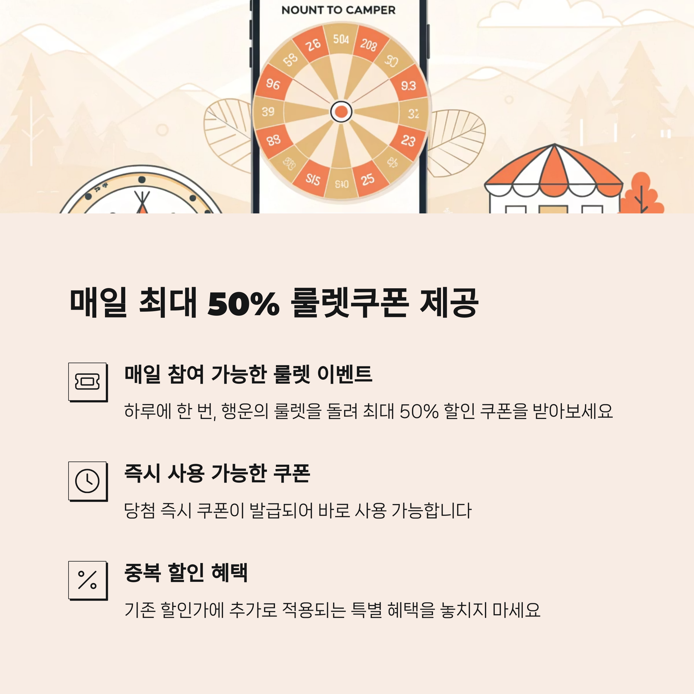 매일 로그인해서 돌릴 수 있고, 운 좋으면 추가 50% 쿠폰까지 GET! 아래 활용 꿀팁 참고하세요.