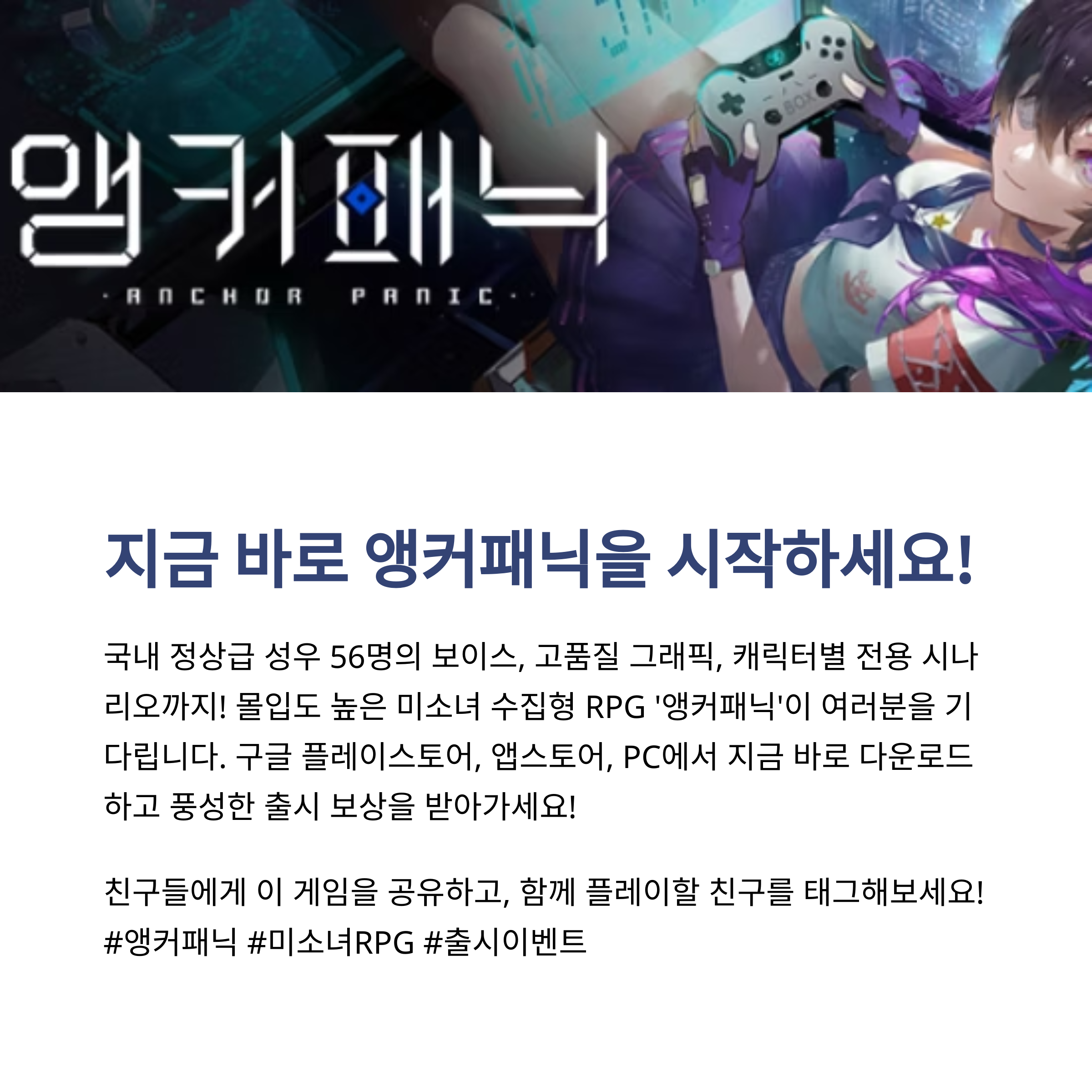 사전예약자 100만 명 돌파, 캐릭터 일러스트부터 성우진까지 완성도 풀세팅! 게임을 좀 해봤다 하는 사람이라면 '앵커패닉' 소식 못 들었을 리 없죠. 저도 마침 넵튠 게임 팬이라 사전예약도 해뒀고, 오늘 정식 출시되자마자 바로 다운로드해서 시작했어요. 이 포스트에서는 앵커패닉이 어떤 게임인지부터, 정식 출시 기념 보상, 성우진, 이벤트 정보까지 핵심만 싹 정리해드릴게요. 게임 시작 전 필수 체크용으로 찜해두셔도 좋습니다!