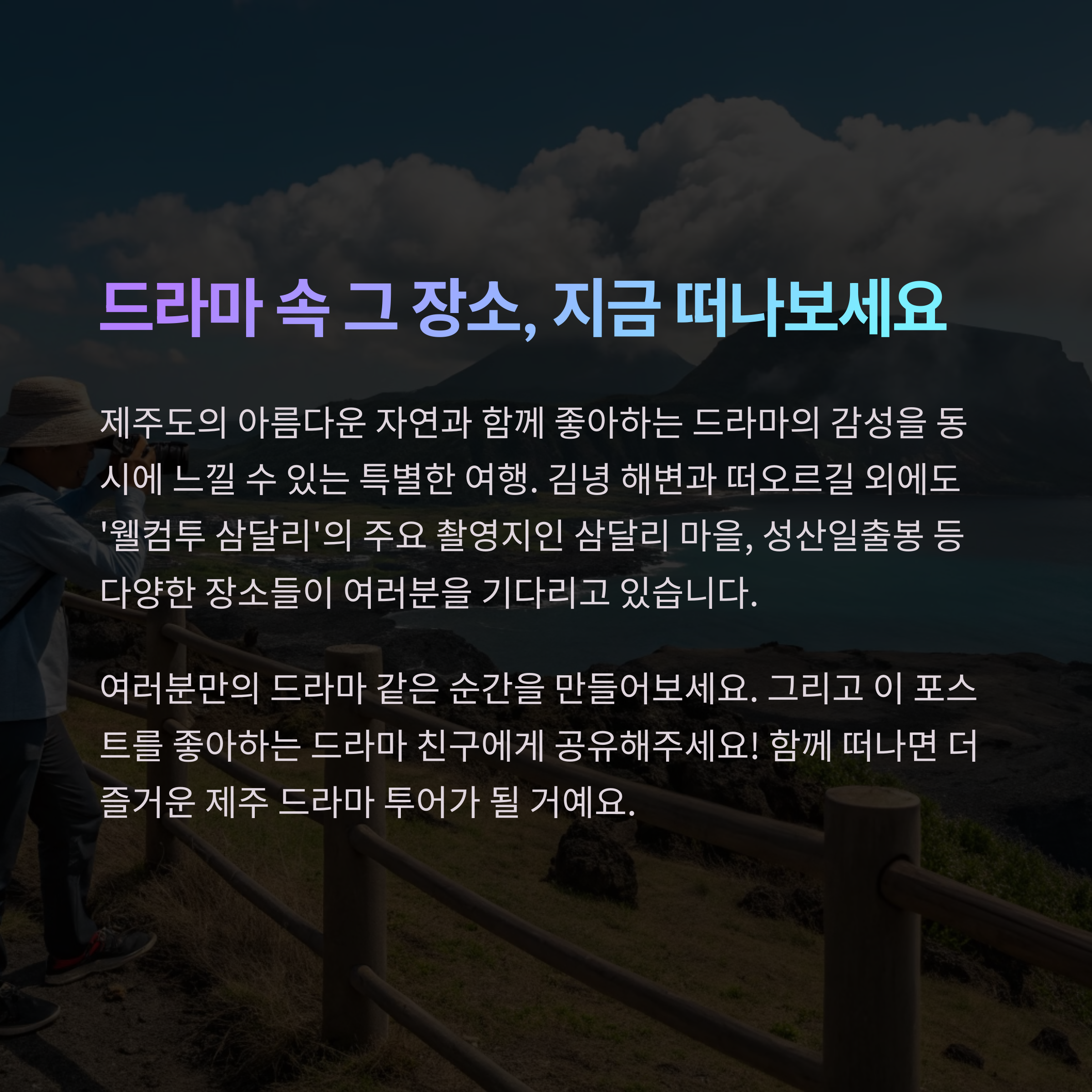 제주도에서 추천하는 숨은 명소가 있나요? 댓글로 공유해 주세요! 좋아요와 공유도 큰 힘이 됩니다.