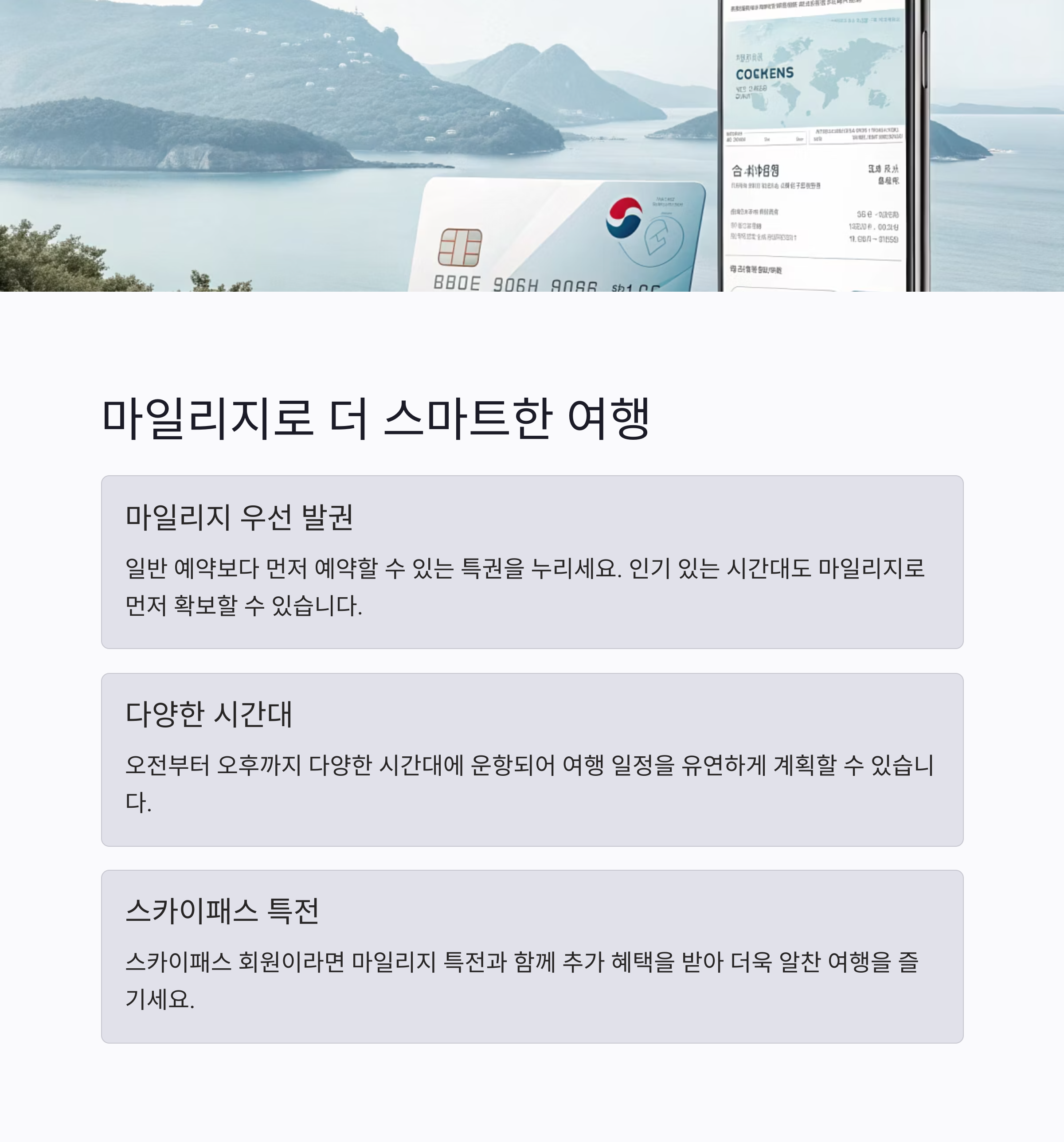 - 마일리지 전용 특별편으로 가성비 높은 여행 가능