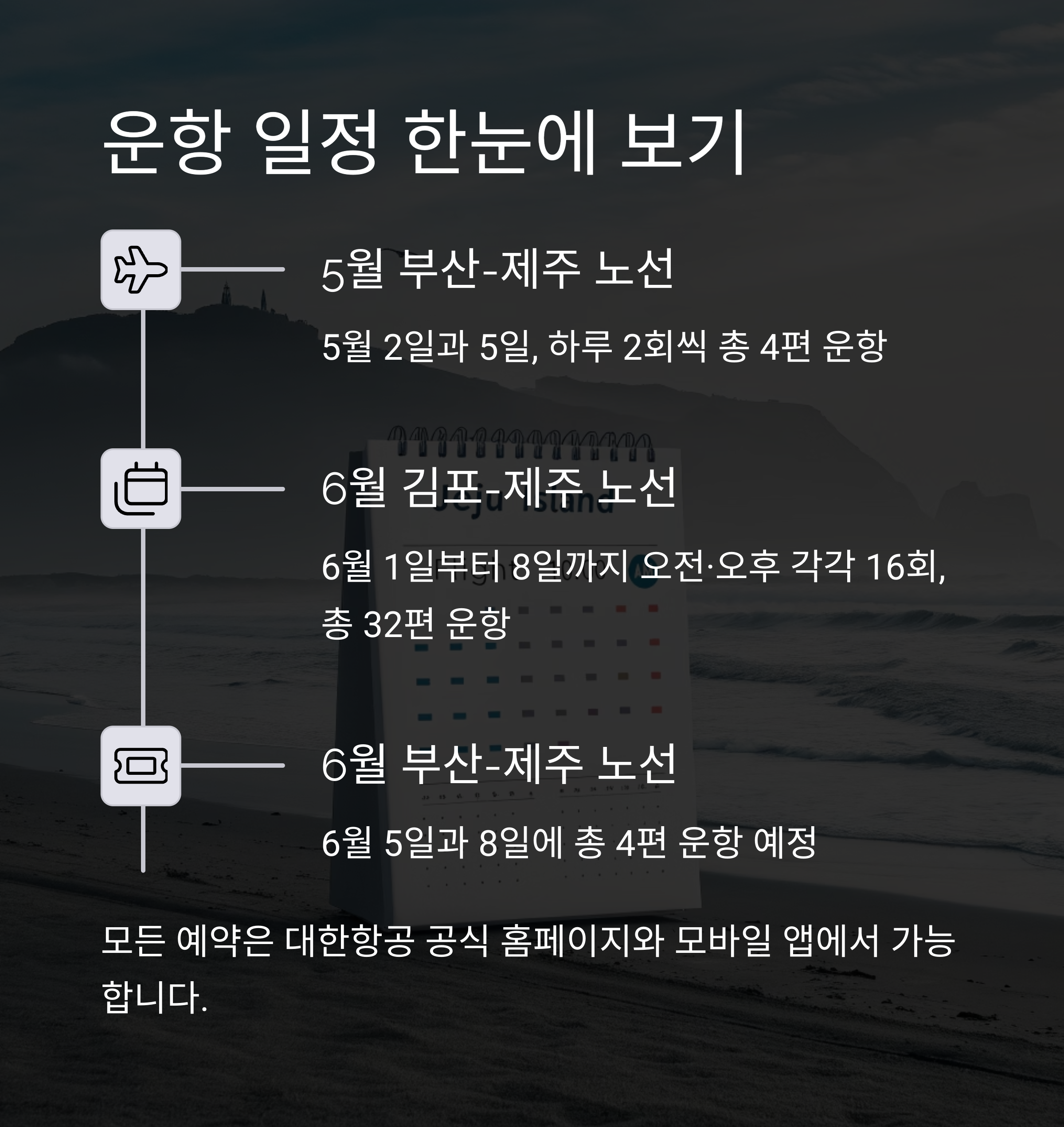 | 6월 5일, 8일 | 부산 → 제주 | 총 4편 |
