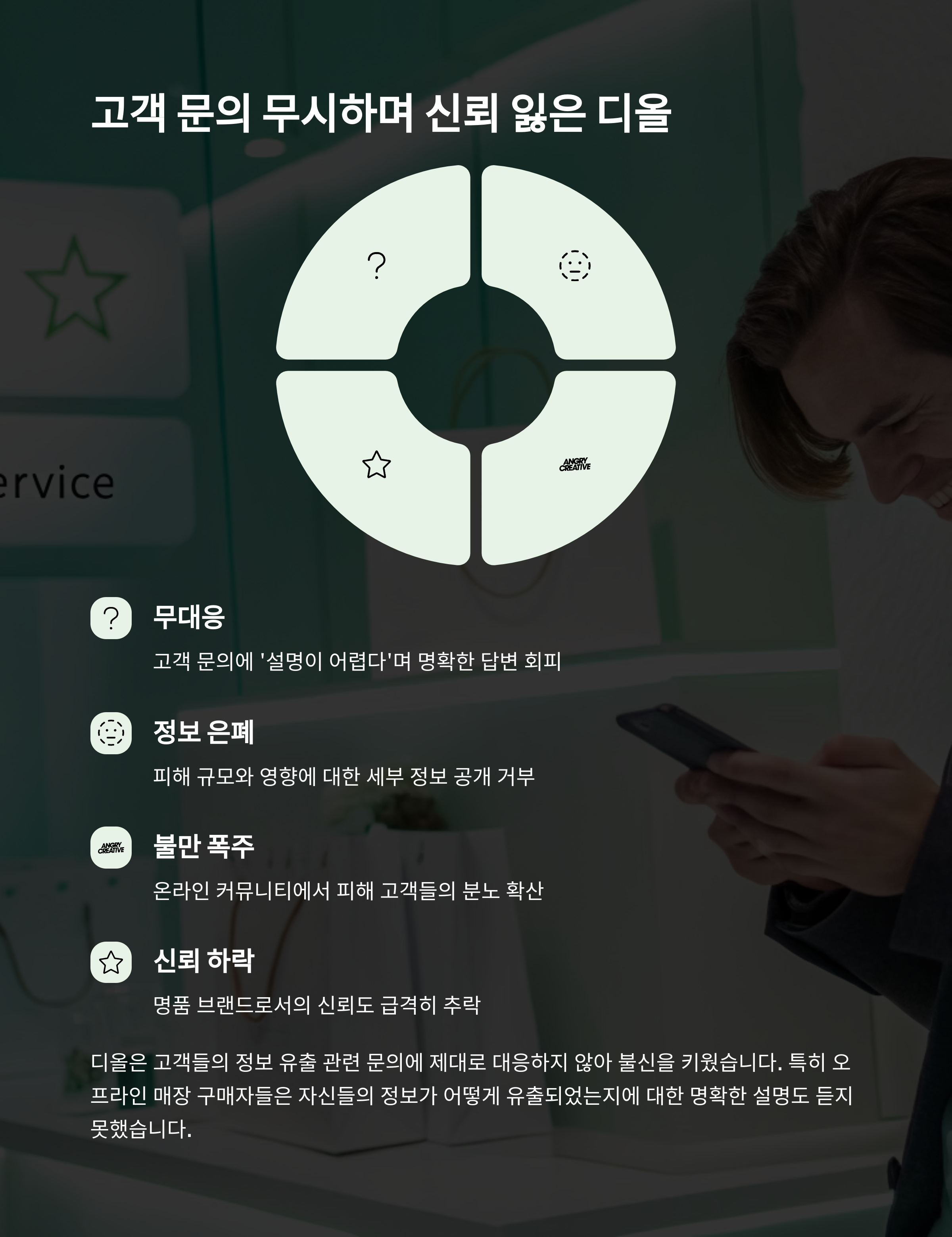 디올 개인정보 유출 사태는 소비자의 민감한 정보를 대하는 브랜드의 태도가 고가 소비 이상의 가치를 가져야 함을 보여줬습니다.