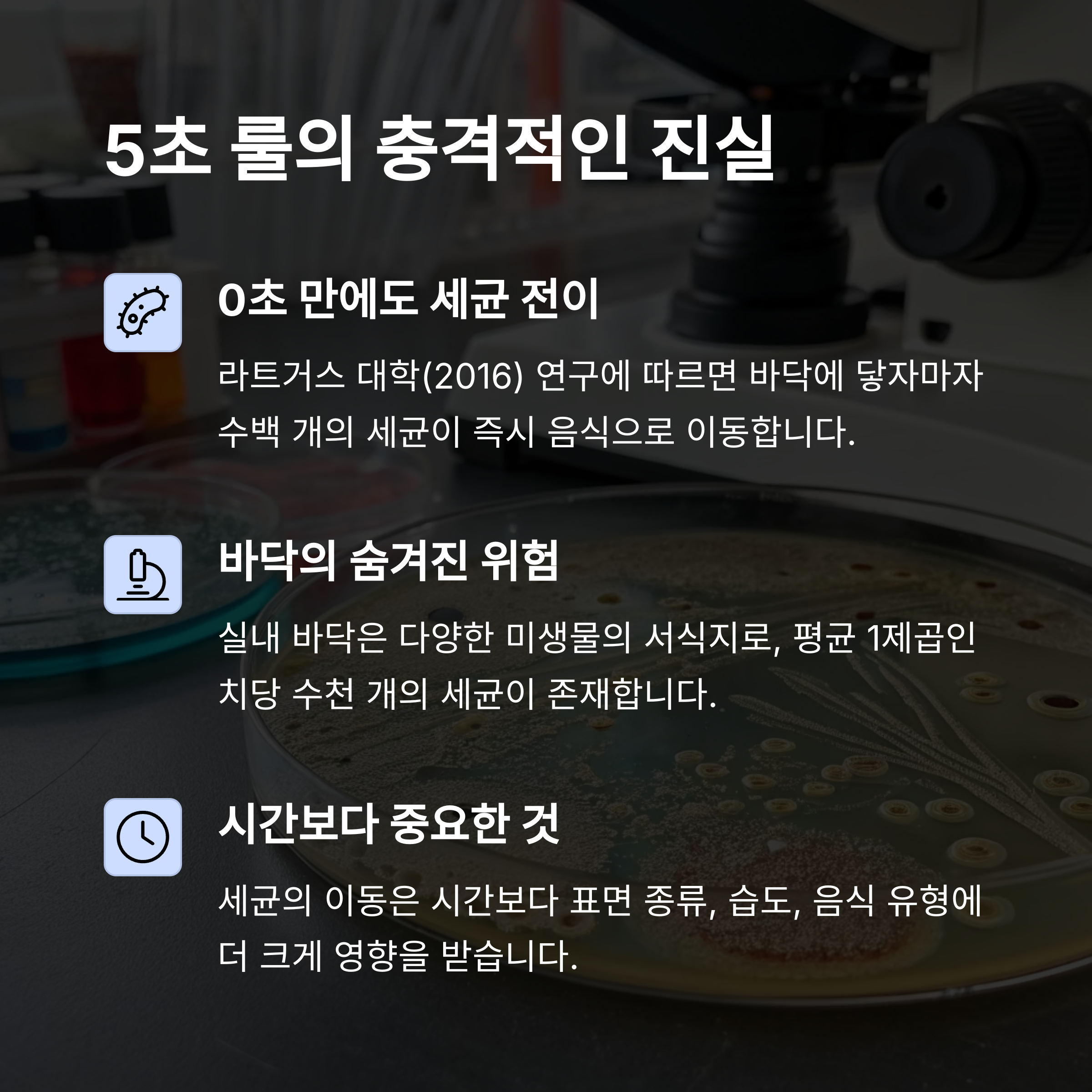 "5초 안에 주우면 괜찮다?" 우리가 무심코 믿어온 이 속설, 과학은 정반대의 경고를 하고 있습니다.