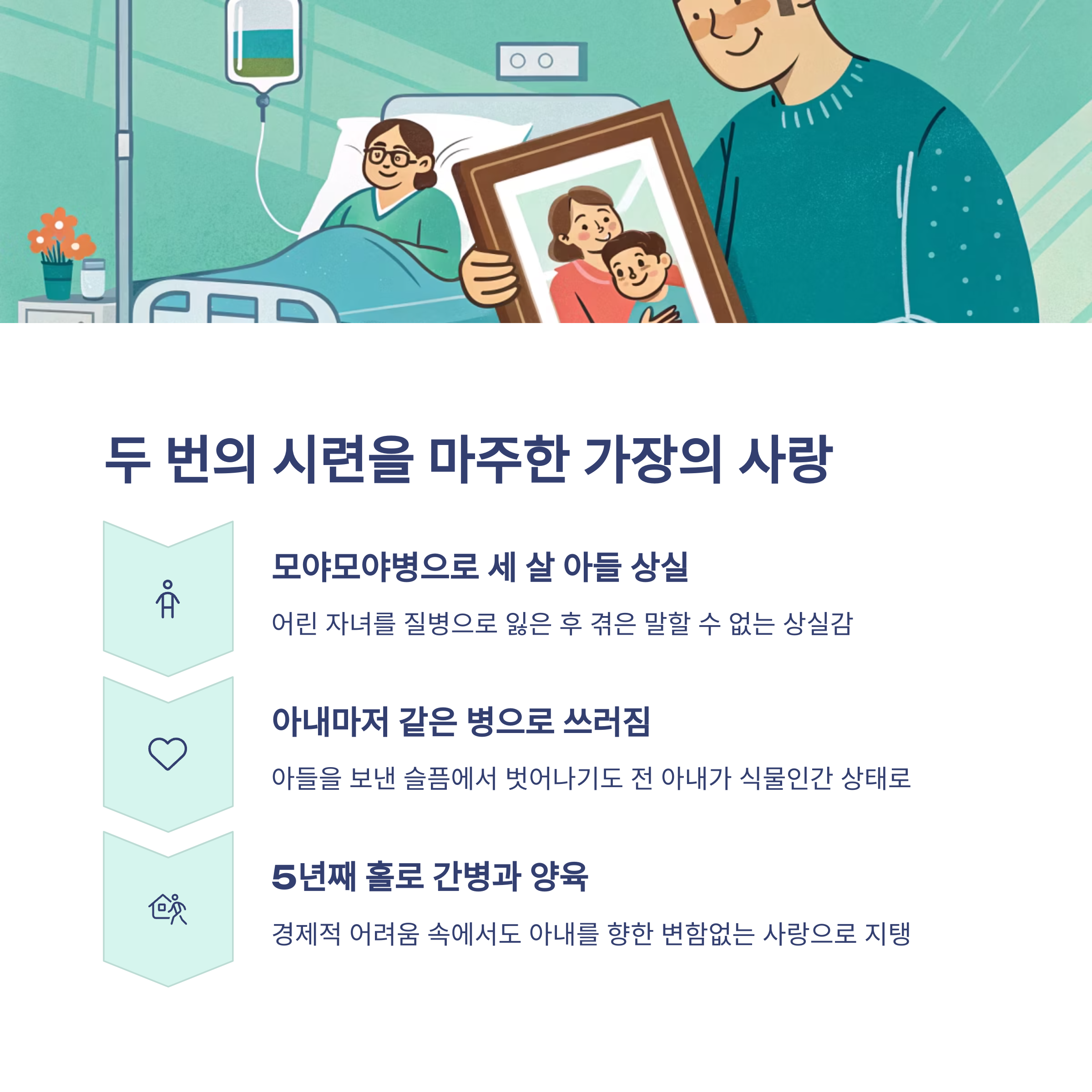 그는 아이들과의 일상을 영상으로 담아 아내에게 보여줍니다. 반응이 없다고 느낄 수도 있지만, 남편은 아내의 눈빛과 아주 미세한 표정 변화에 집중하며 교감하려 합니다. 돌봄의 깊이는 실로 엄청납니다. 외부 검색이나 관련 기사 없이도 이 이야기에 공감하고 찾는 이들이 늘어나는 데는, 바로 이런 삶의 생생한 밀도가 있기 때문입니다.