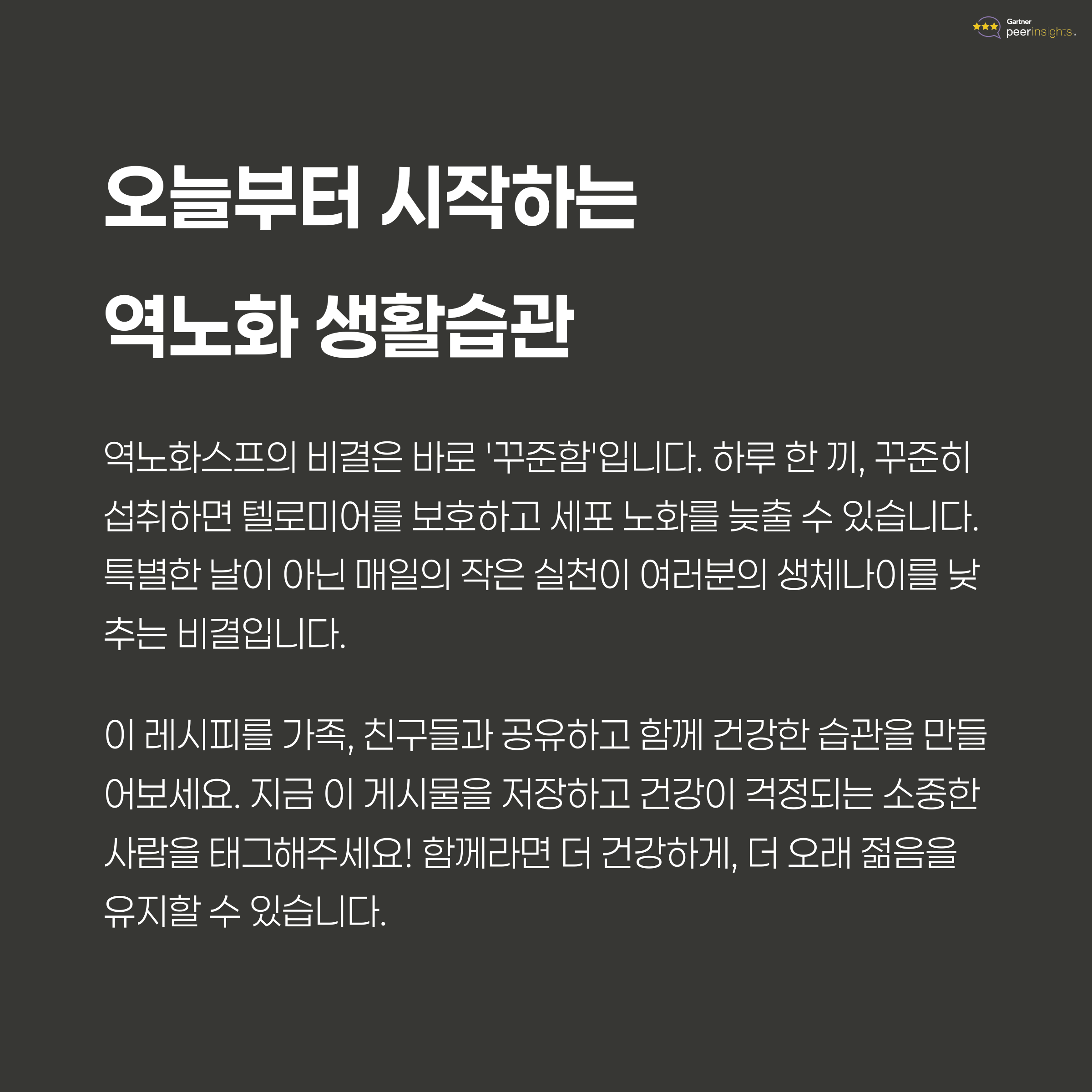 가능하면 매일 한 끼는 역노화스프로 대체하면 효과적입니다. 주 4~5회만 섭취해도 긍정적인 변화를 기대할 수 있습니다.