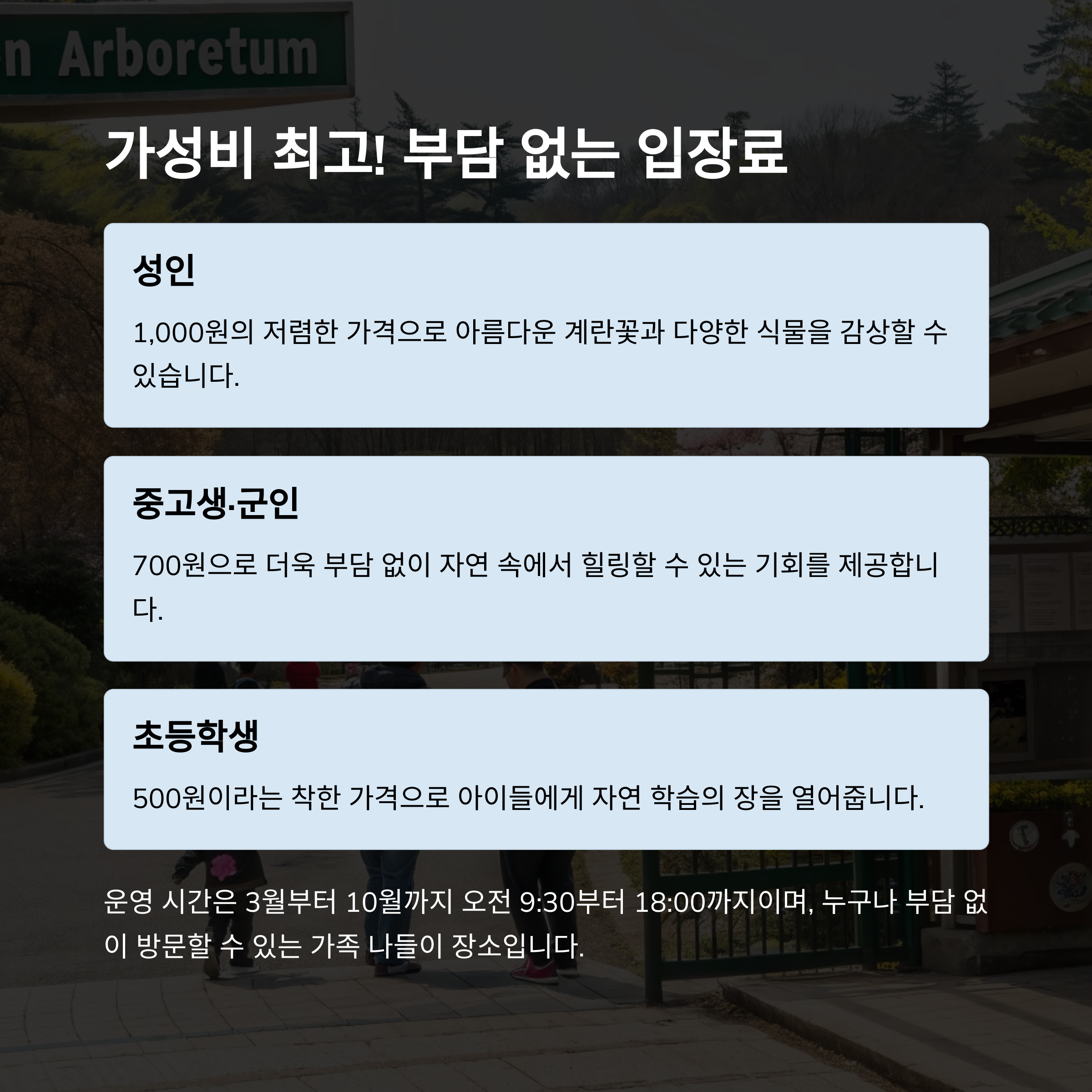 아래만 잘 체크해두셔도 훨씬 여유롭고 쾌적한 수목원 나들이가 될 거예요.