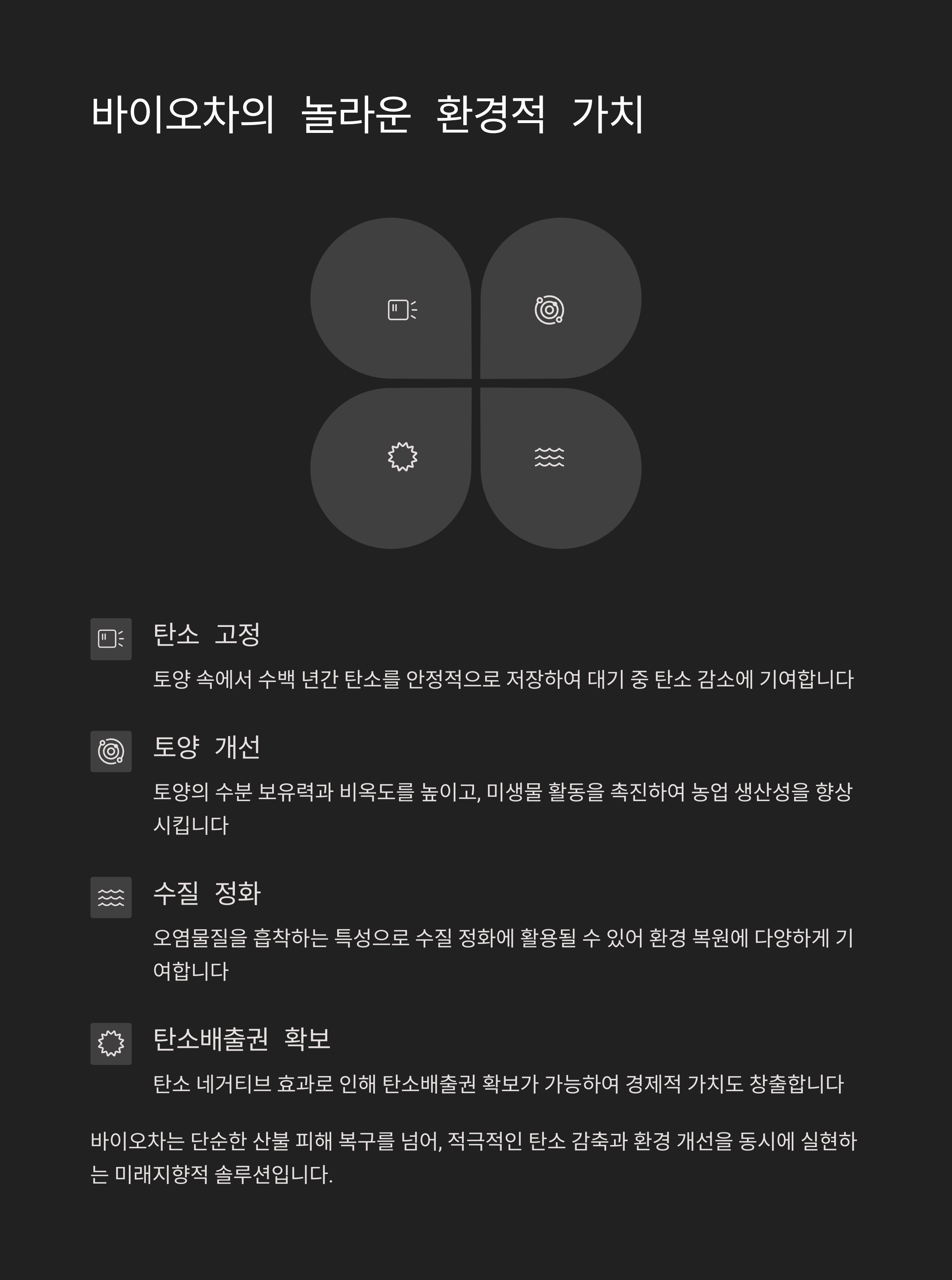 | 3단계 | 바이오차를 탄소저감 및 지역 자원으로 활용 |