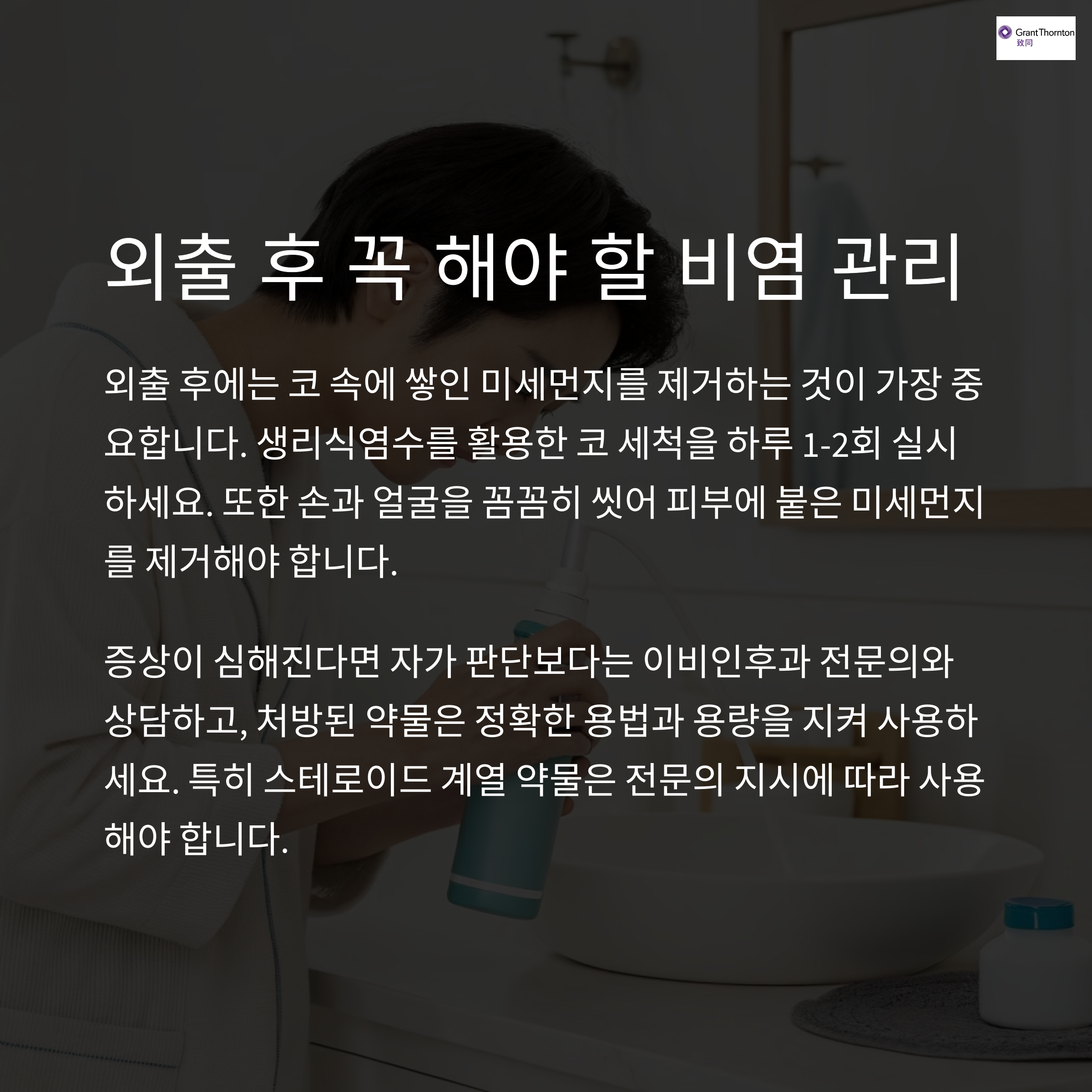 약에만 의존하지 않고 일상에서 비염을 덜 자극하는 습관을 들이면 더 큰 효과를 볼 수 있어요.