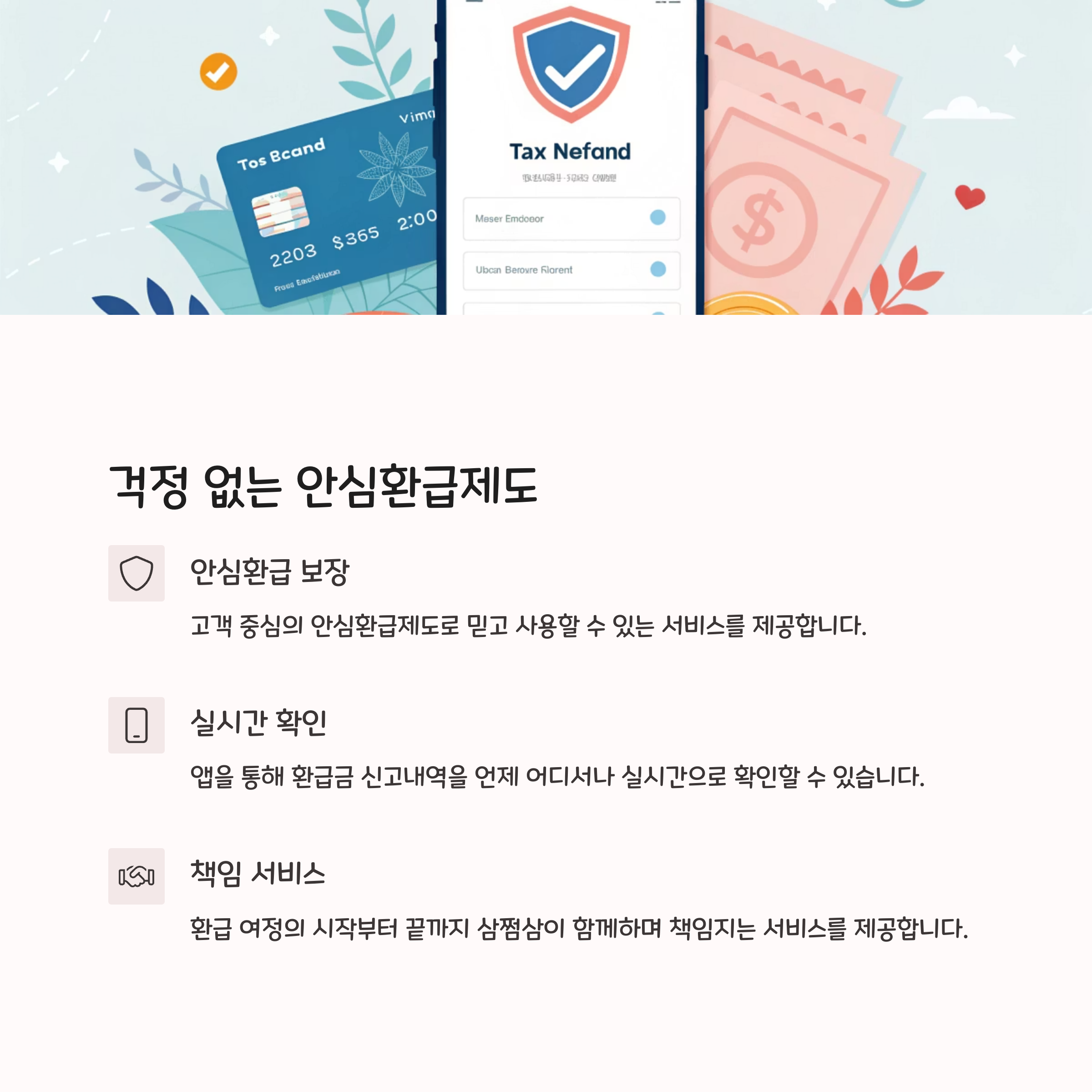 - 환급 내역 전 과정을 앱에서 확인 가능 (안심환급제도)
