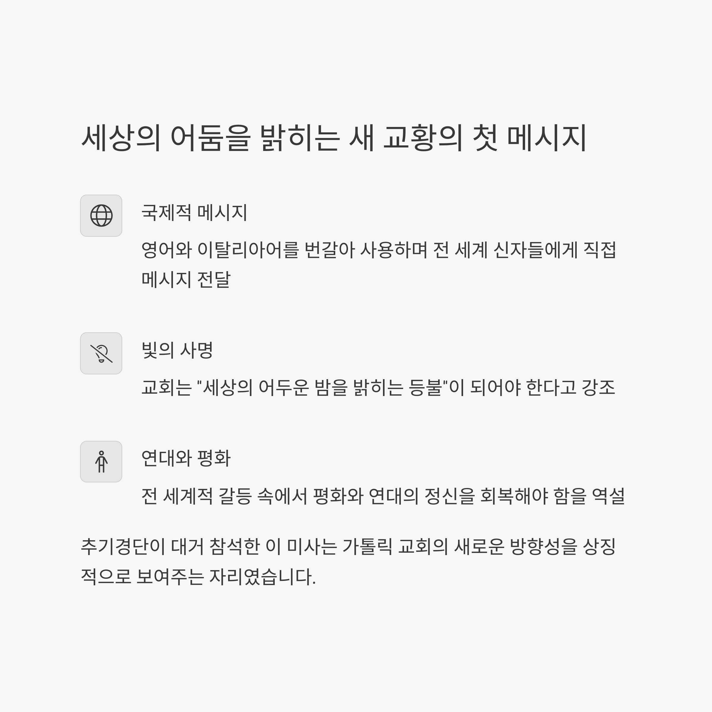 ✔첫 미사 핵심 메시지 요약