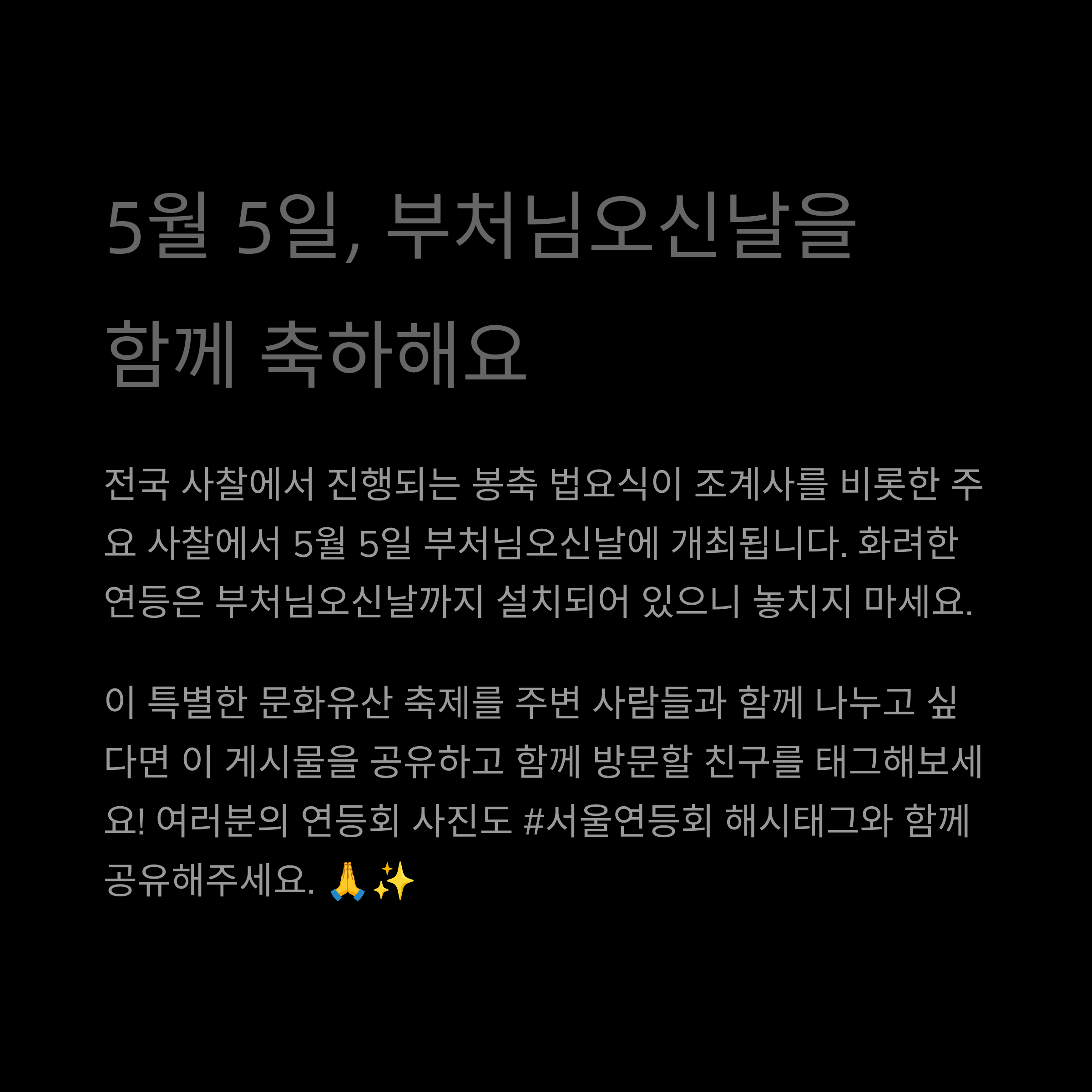 | 날짜 | 2025년 5월 5일 (부처님오신날) |
