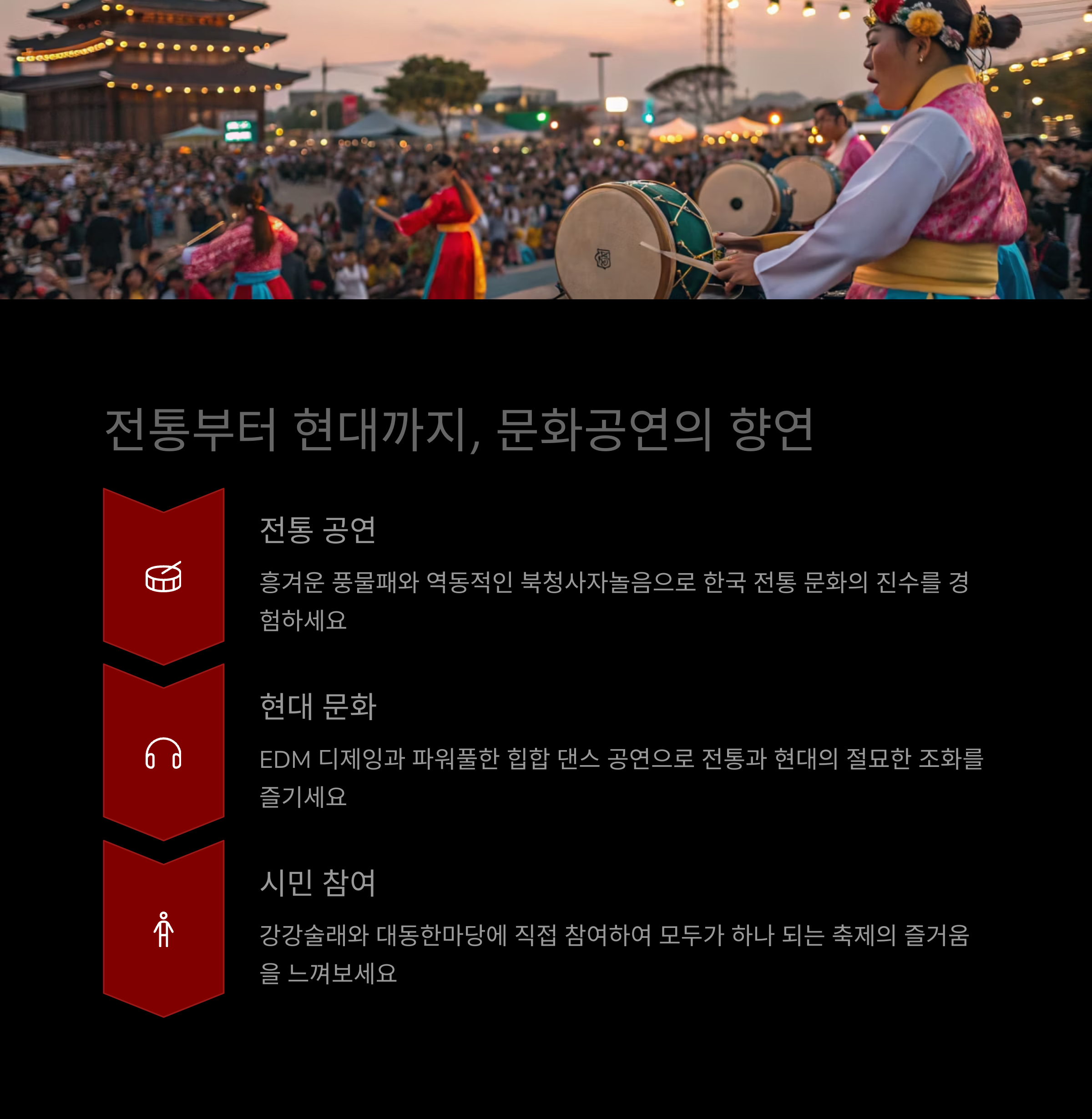 • 현대 감성의 DJ 무대와 힙합 퍼포먼스도 경험 가능