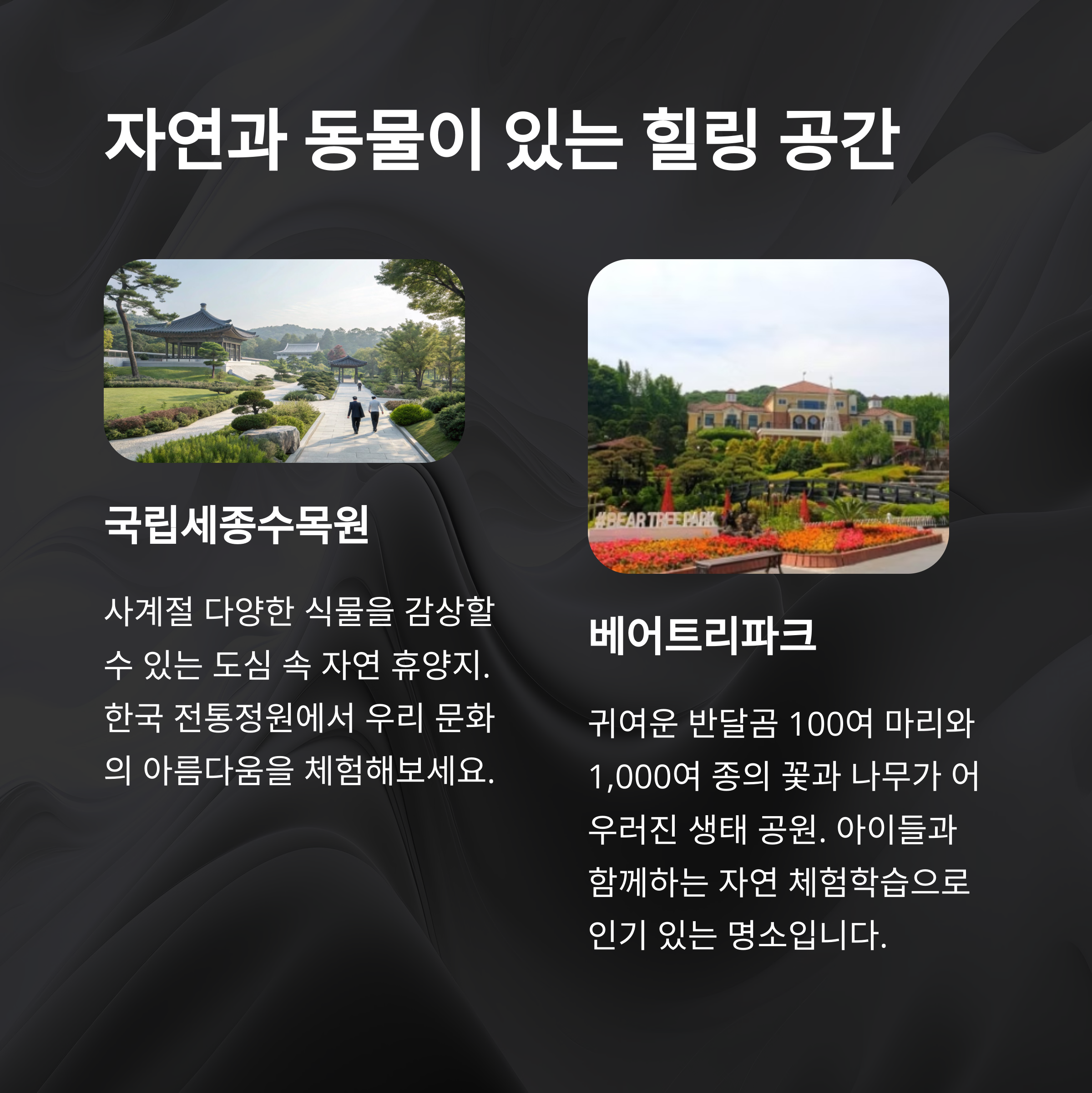 안녕하세요. 오늘은 최근 여행지로 각광받고 있는 세종시의 매력을 가득 담은 장소들을 소개해드릴게요. 세종시는 대한민국의 행정 중심지라는 인식이 강하지만, 막상 여행을 떠나보면 자연, 문화, 교육, 감성까지 모두 경험할 수 있는 '복합 힐링 도시'라는 사실을 알 수 있습니다. 서울과 대전에서 대중교통으로도 쉽게 이동할 수 있고, 깨끗하고 잘 정비된 환경 덕분에 아이와 함께하는 나들이나 커플 여행, 조용한 혼자 여행까지 누구에게나 좋은 선택지가 되어줍니다. 이번 글에서는 세종에서 꼭 들러야 할 대표 핫플 7곳을 큐레이션해봤어요. 테마별로 골라보는 재미도 쏠쏠하니, 지금부터 하나씩 확인해보세요!