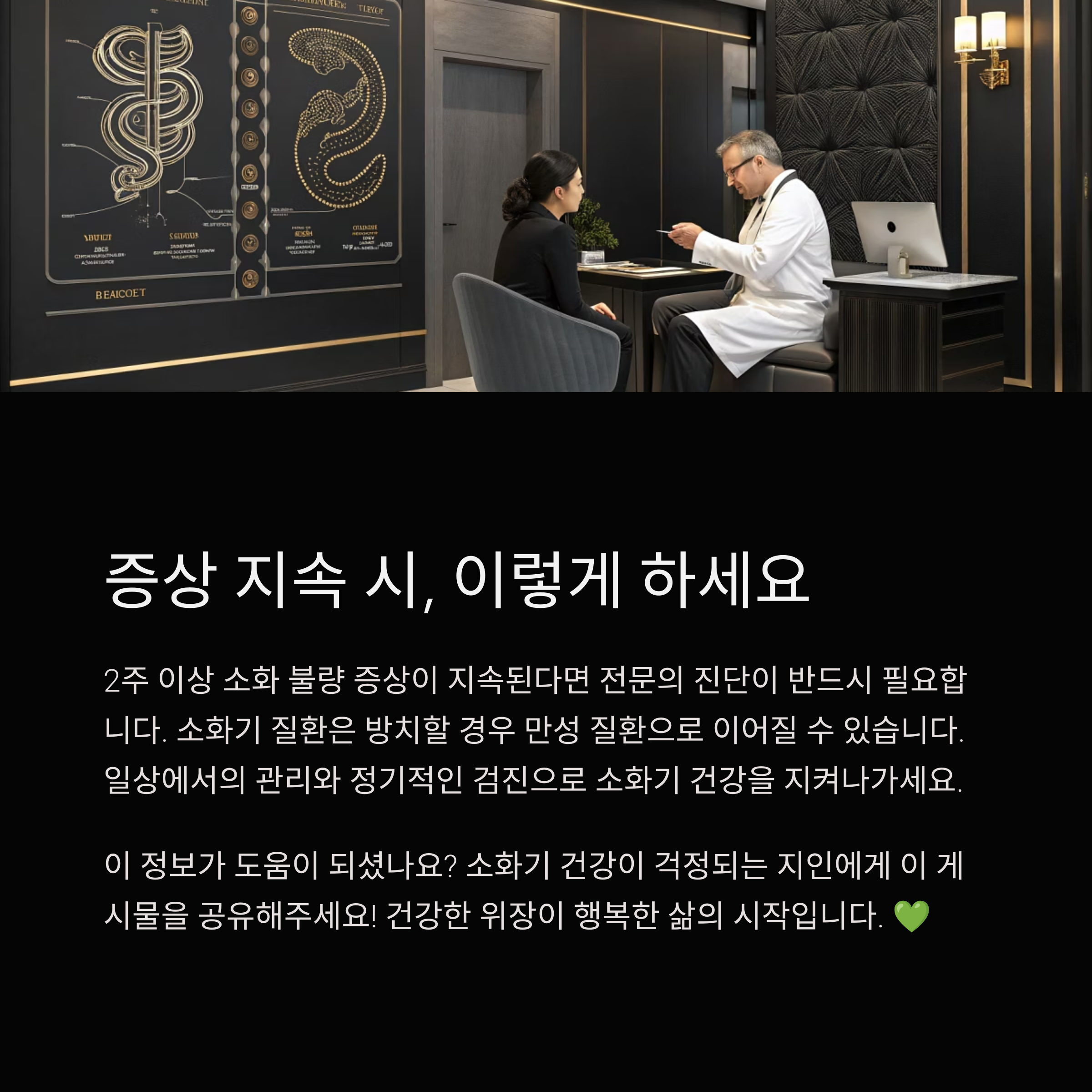 생활 습관 개선으로도 증상이 지속되거나 악화된다면 반드시 전문가의 진료를 받아야 합니다. 특히 다음과 같은 증상이 있다면 단순한 소화불량이 아닐 수 있습니다.