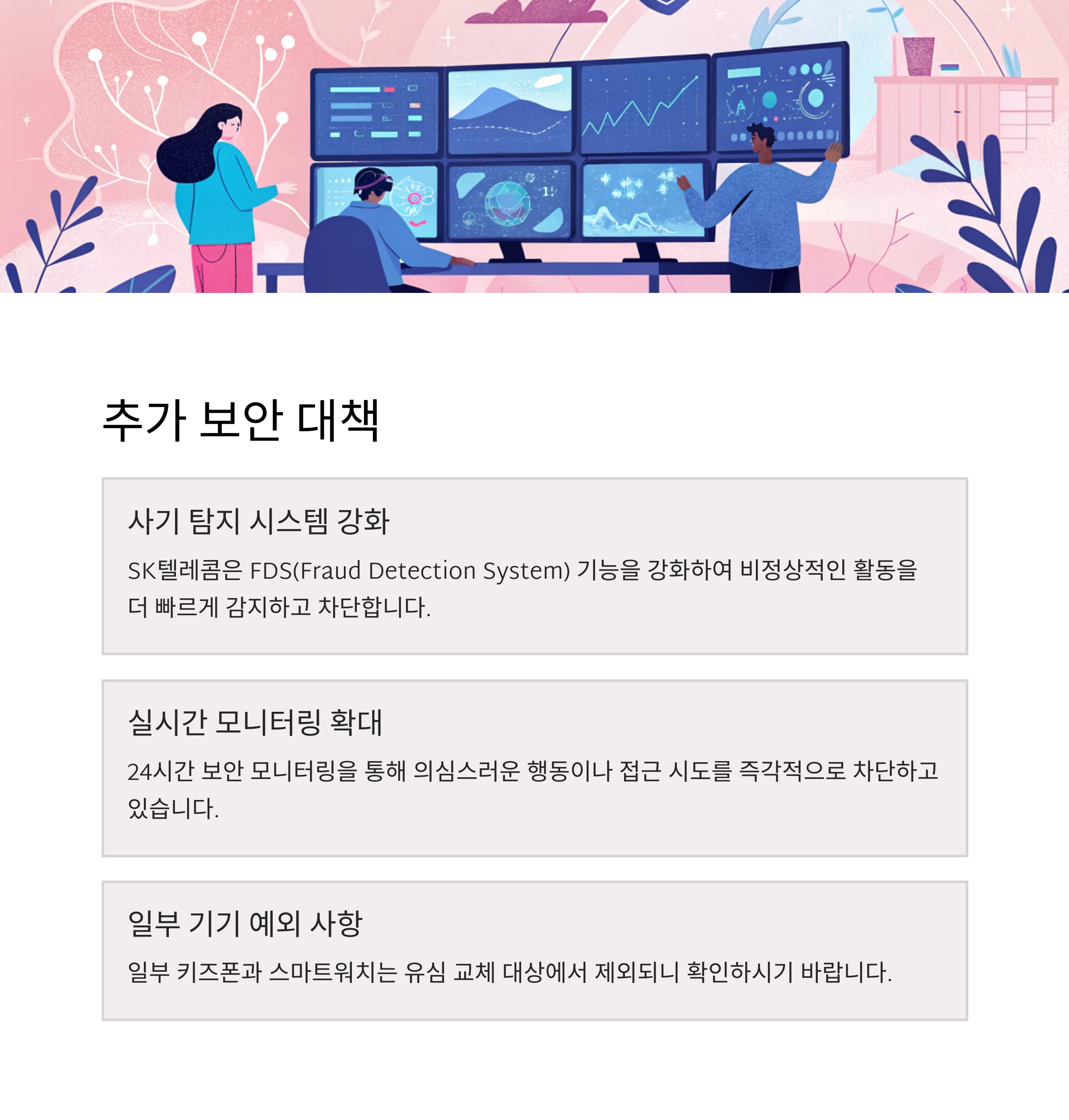 4월 27일, SK텔레콤은 자사 보도자료를 통해 “유심 해킹 방지 및 피해 100% 보상” 방침을 공식 발표했습니다. 최근 발생한 유심 복제 해킹 사건에 대한 고객 불안감을 인지하고, 유심 보호 서비스 가입을 통해 해킹 시도를 사전에 차단할 수 있으며, 가입 상태에서 피해 발생 시 전액 보상하겠다는 입장입니다. 이는 국내 통신사 최초의 공식 보상 약속이라는 점에서 큰 주목을 받고 있습니다.