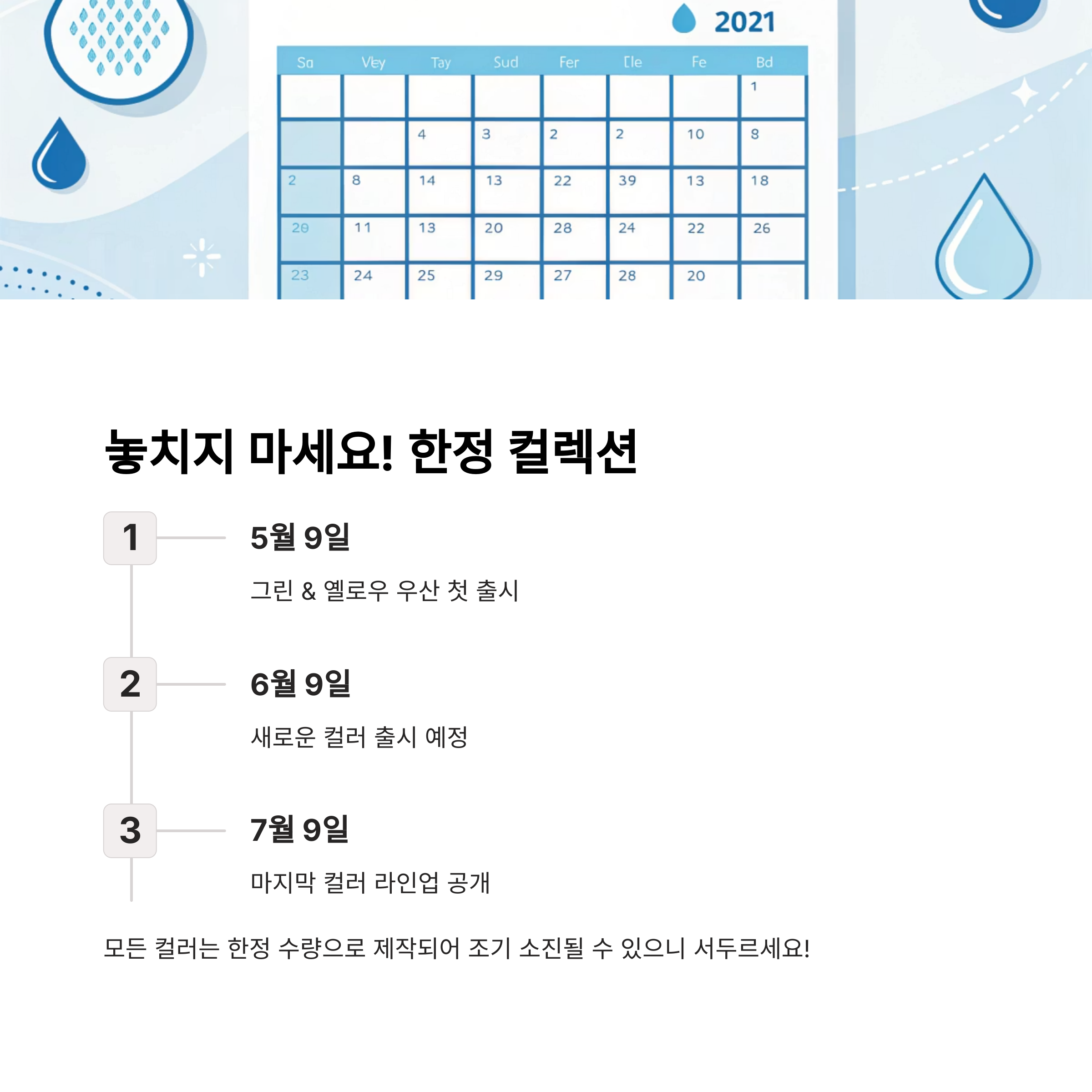 - 다음 우산 컬러 출시 예정일: 6월 9일(월), 7월 9일(수)