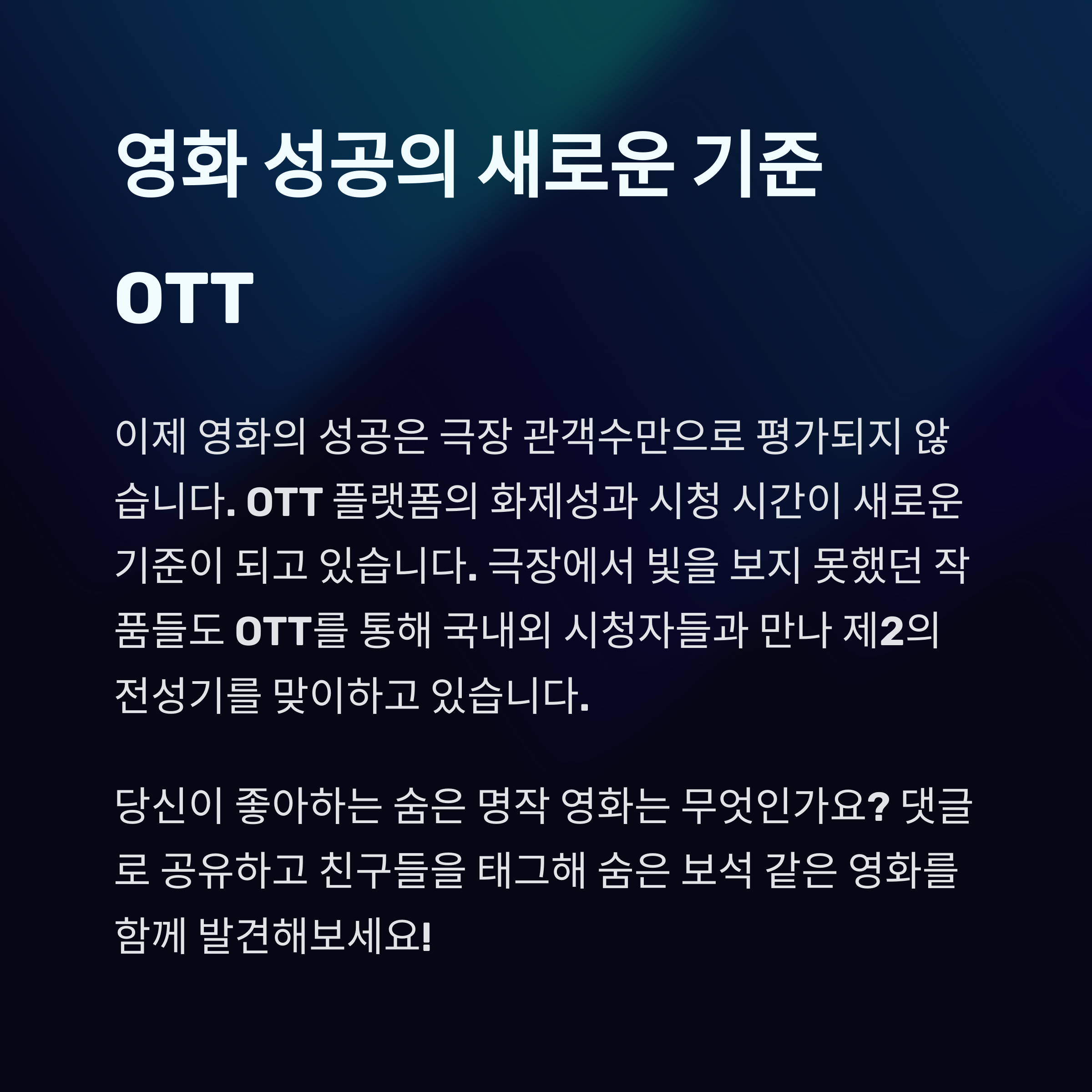 Q. 앞으로 OTT 시대에 맞는 영화는 어떤 특징을 가질까요?