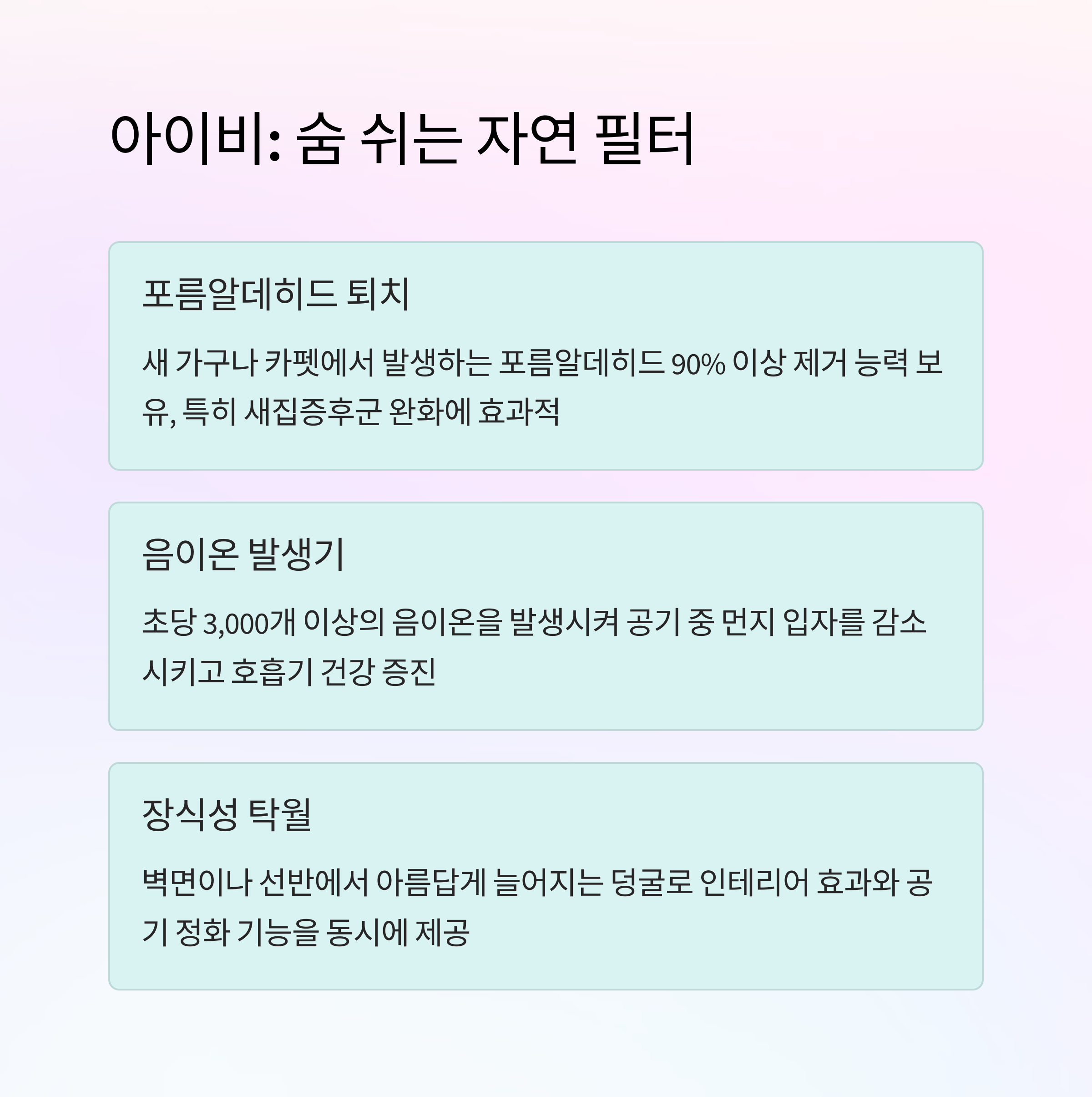 2. 아이비: 음이온 발생으로 실내 공기 개선