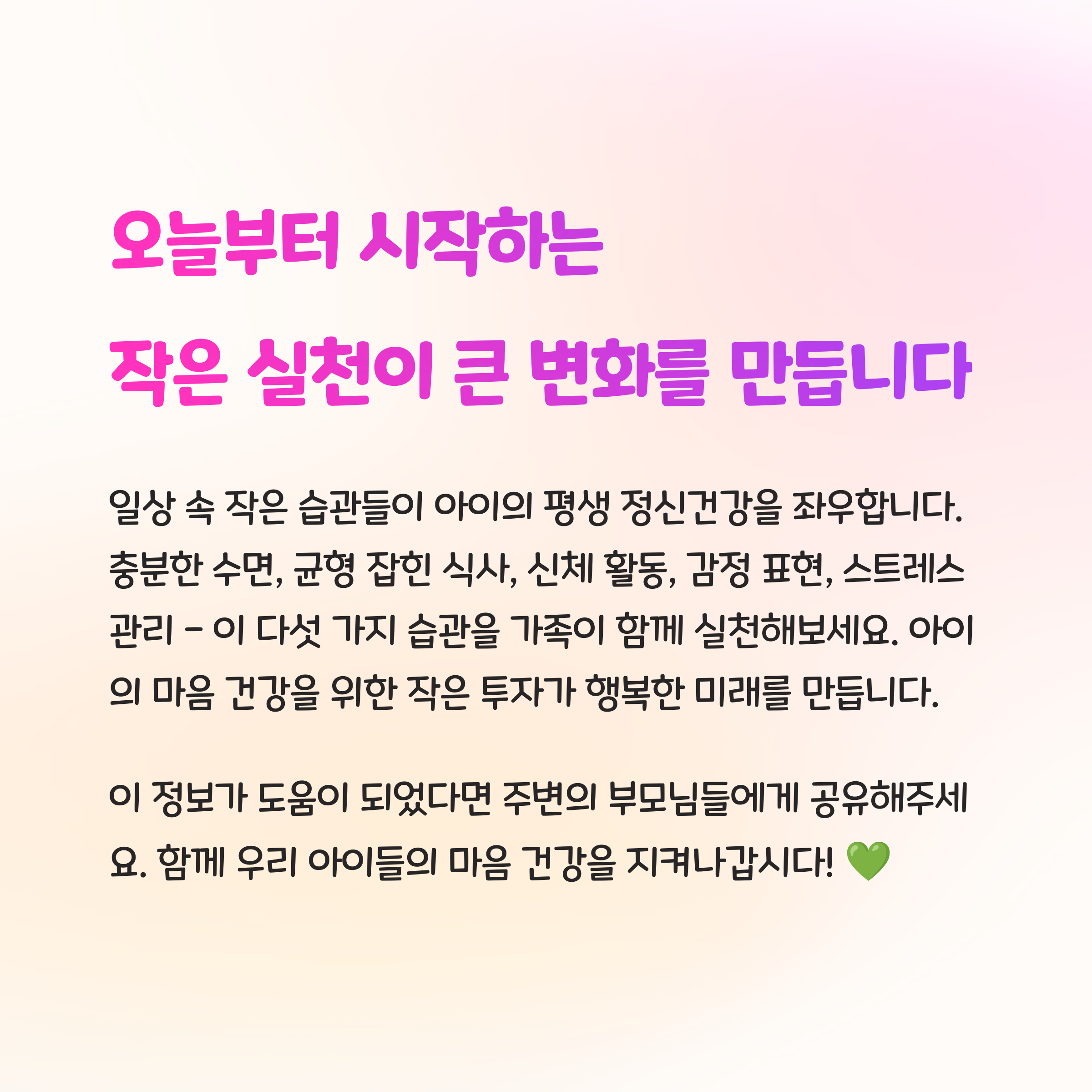 아이들의 마음 건강은 생활 속 작은 습관에서 시작됩니다.