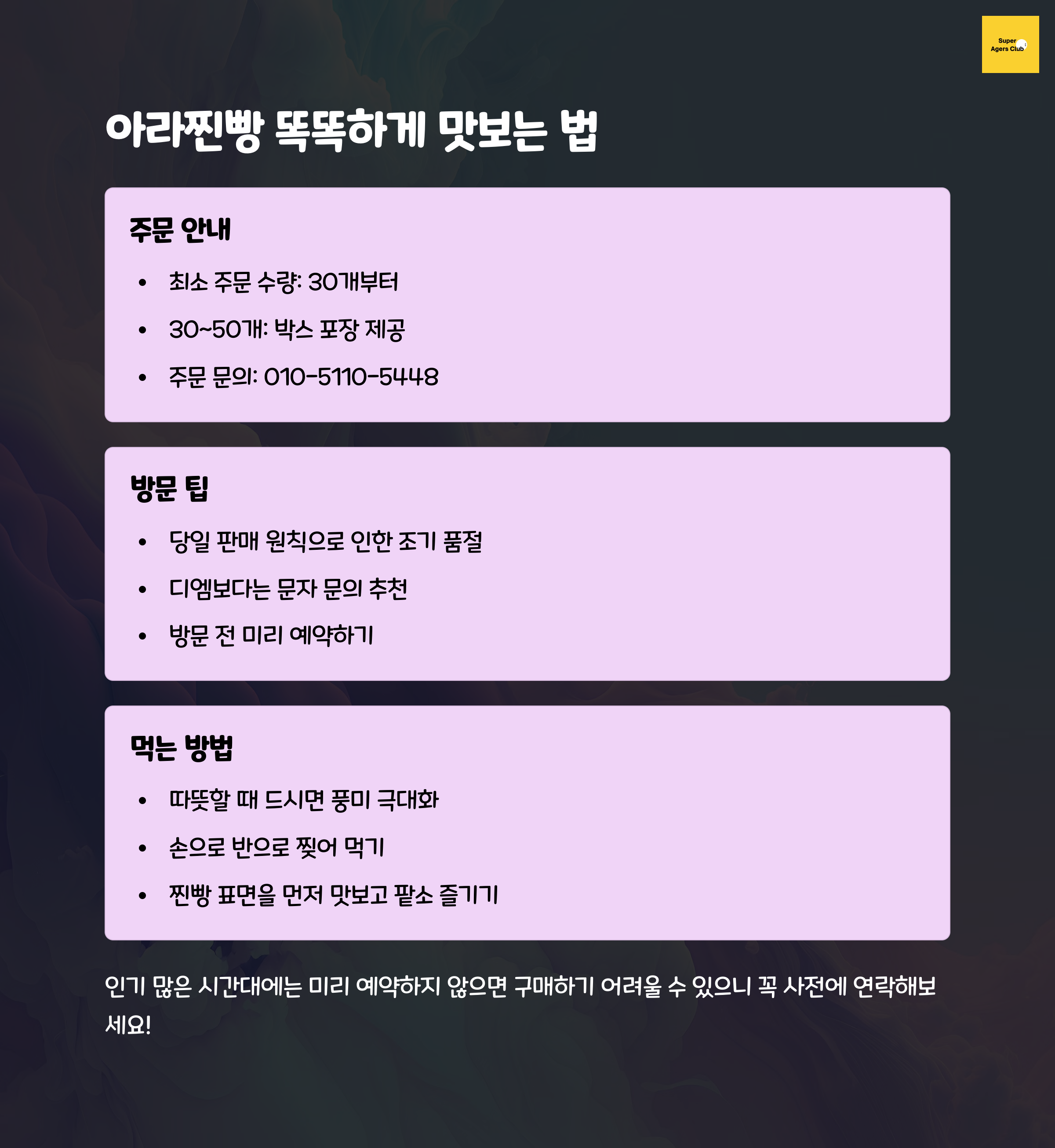 Q 아라찐빵은 언제 방문해야 신선한 찐빵을 먹을 수 있나요?