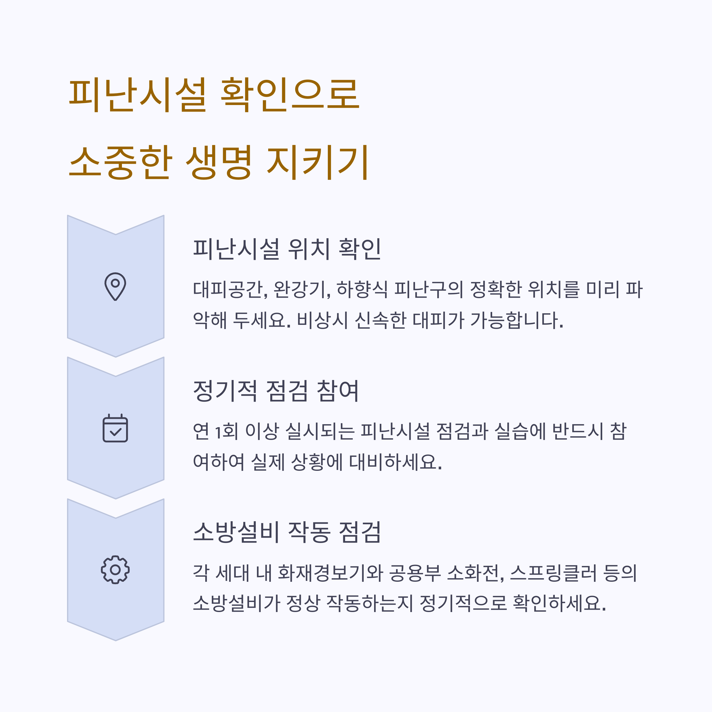 하지만 대피 동선과 피난 시설을 미리 점검하고 익혀두는 것만으로도 큰 피해를 막고 생명을 지킬 수 있습니다.
