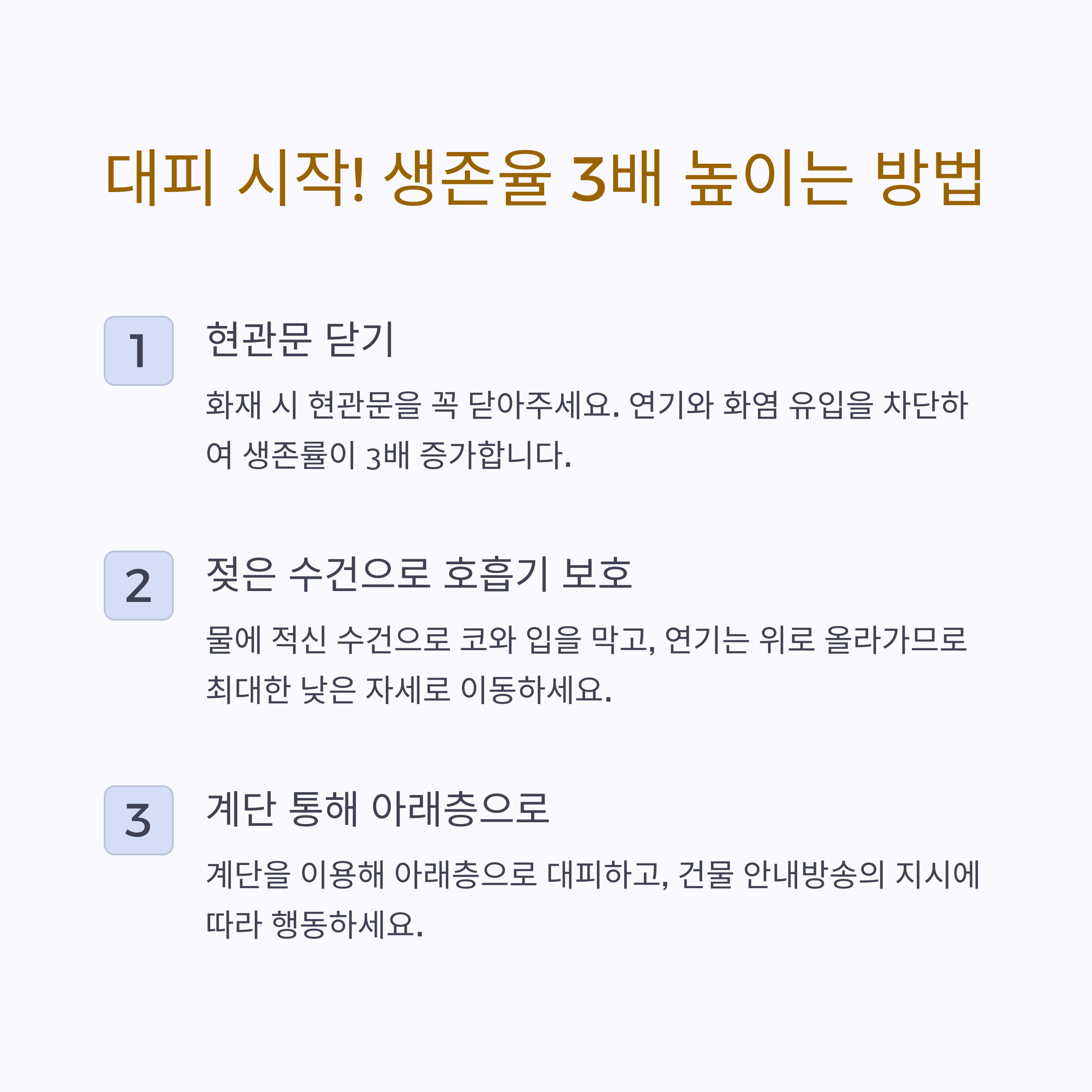 - 현관문 꼭 닫고 나가기 → 연기 확산 방지
