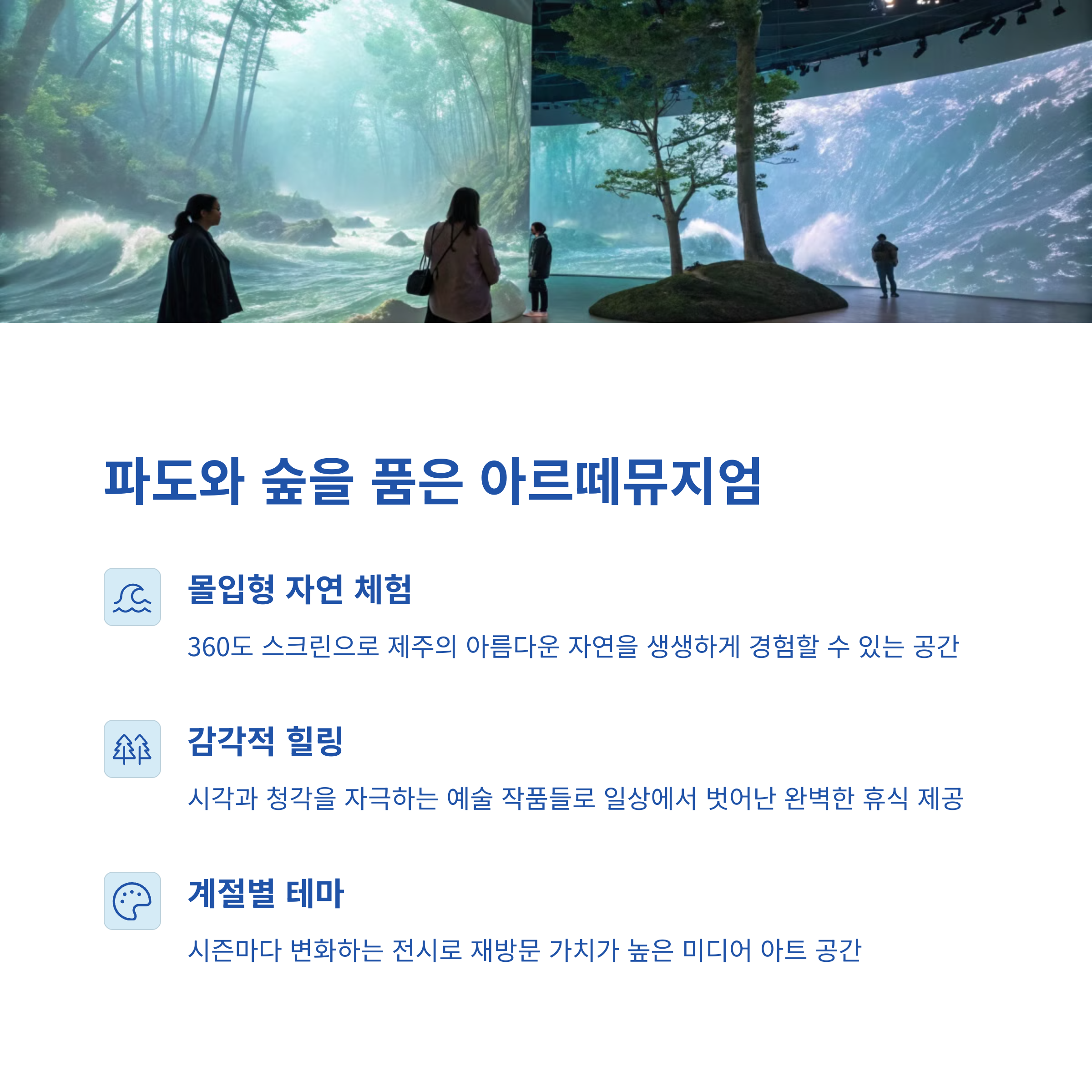 | 아르떼뮤지엄 제주 | 자연, 몰입형 미디어 아트 | 파도와 숲의 영상 연출 |