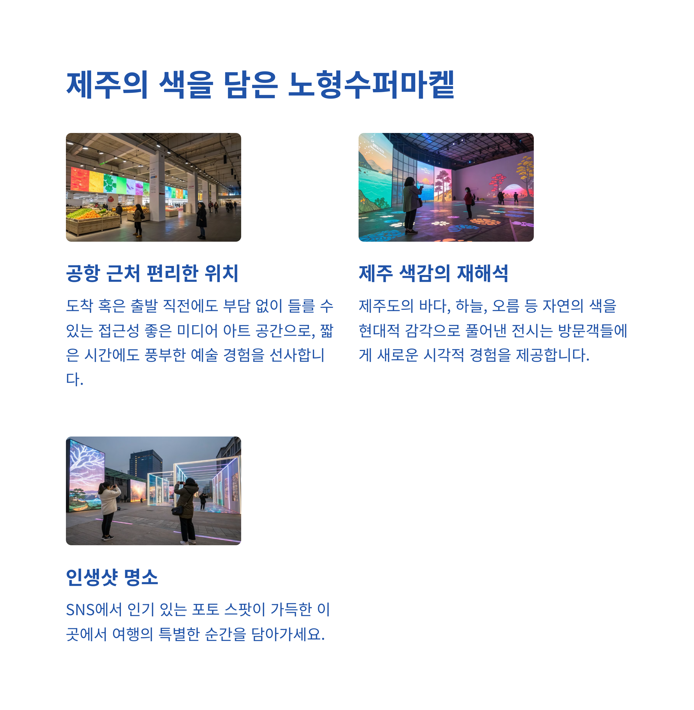 | 노형수퍼마켙 | 제주의 색감과 문화 | 디지털 아트와 감성 공간 |