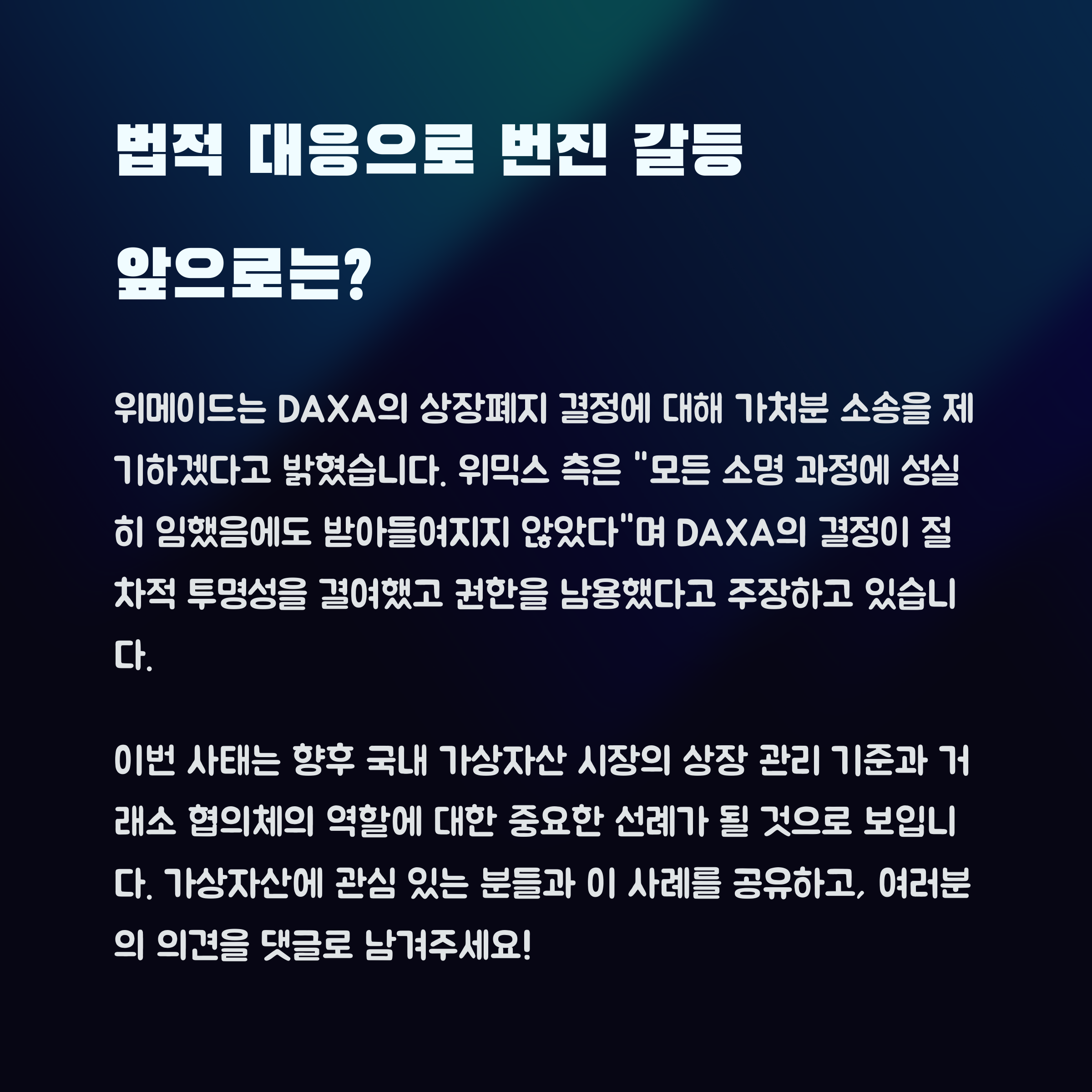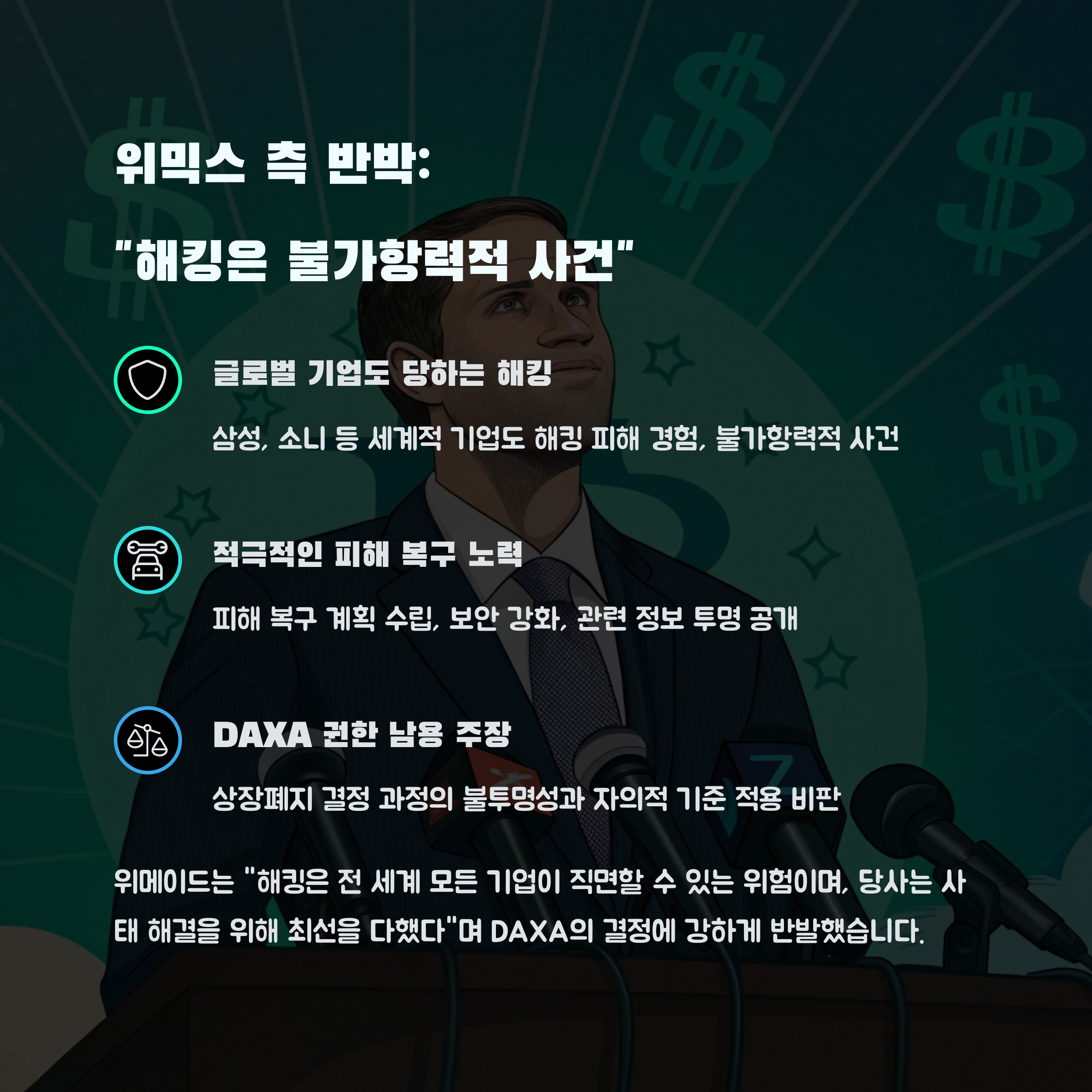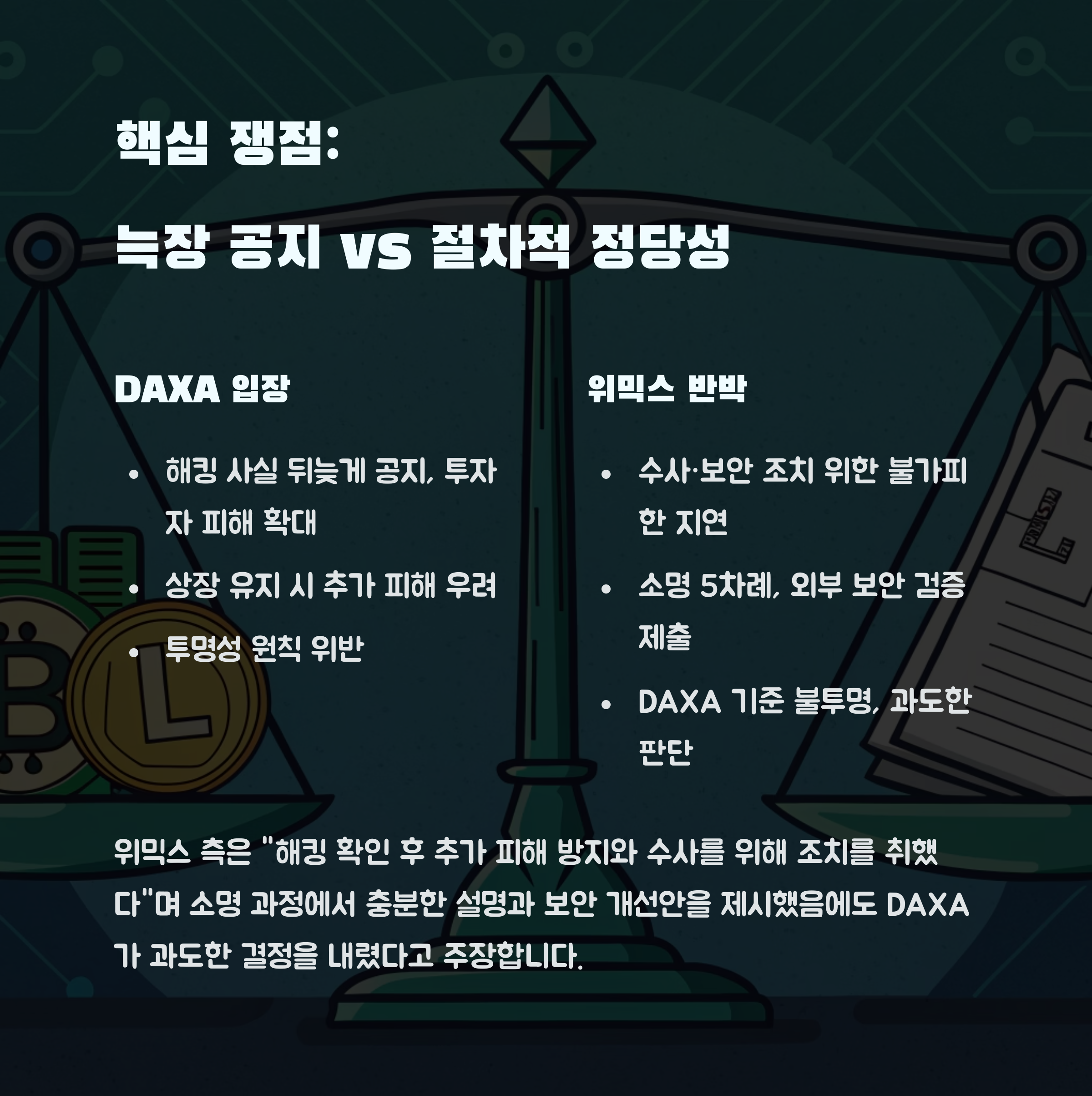 | DAXA 권한 | “DAXA는 민간 협의체일 뿐, 법적 상장폐지 권한 없어.” |