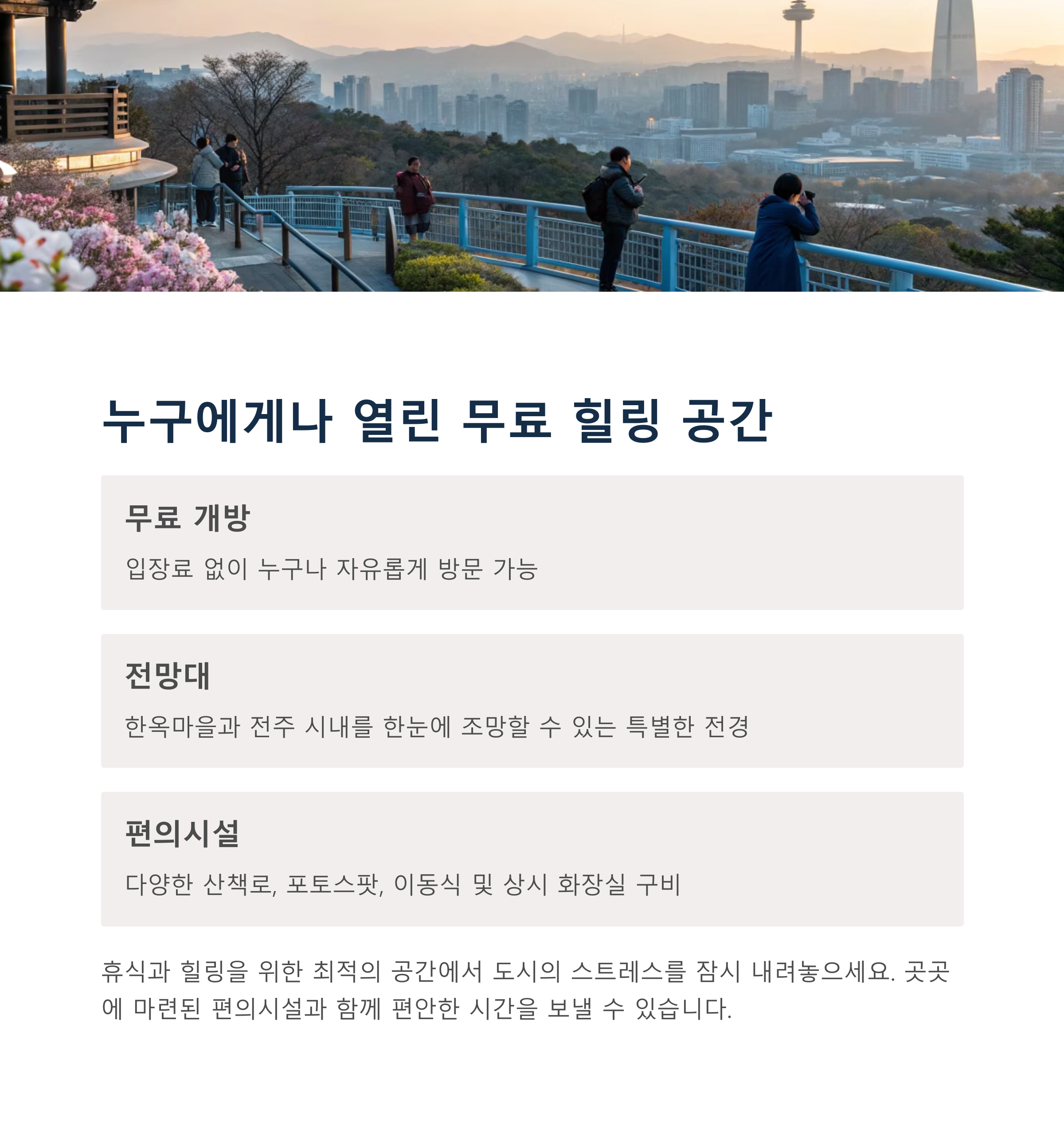 - 도심 연계 산책: 완산공원 전체가 연결되어 있어 산책 루트로 좋음