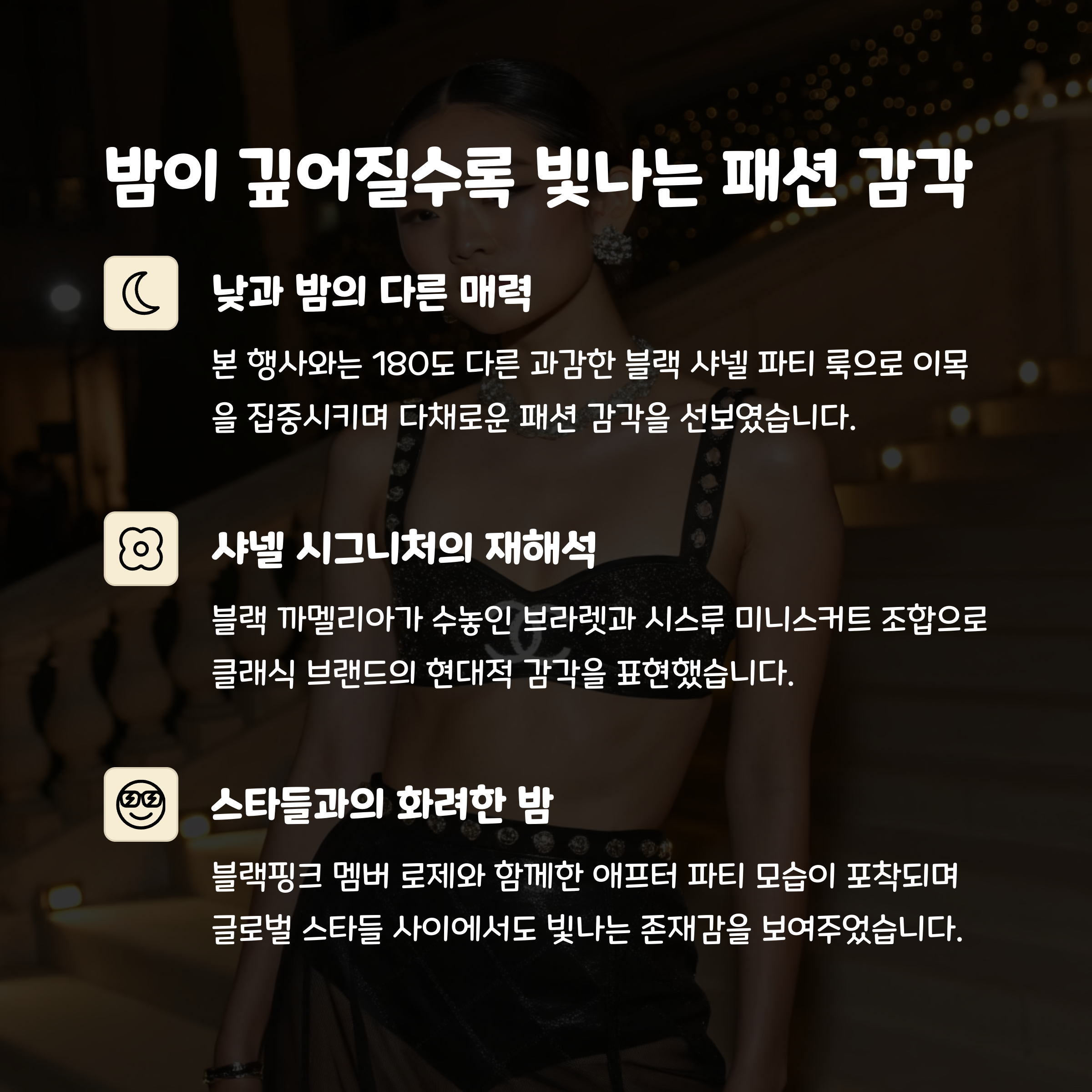 멧 갈라에서의 패션 선택은 단지 스타일의 문제가 아닌, 문화·정체성·예술에 대한 표현으로 기능했습니다. 샤넬을 입은 그녀의 모습은 ‘럭셔리’라는 단어 이상의 상징성을 지니며, 이는 아시아 여성 스타의 위치를 재정의하는 데 기여하고 있습니다. 제니는 매번 새로운 경계에 도전하면서도 일관된 정체성을 유지하는 드문 인물입니다. 그녀의 존재감은 이제 패션, 음악, 예술을 통합하는 현대적 뮤즈의 전형이라 해도 과언이 아닙니다.