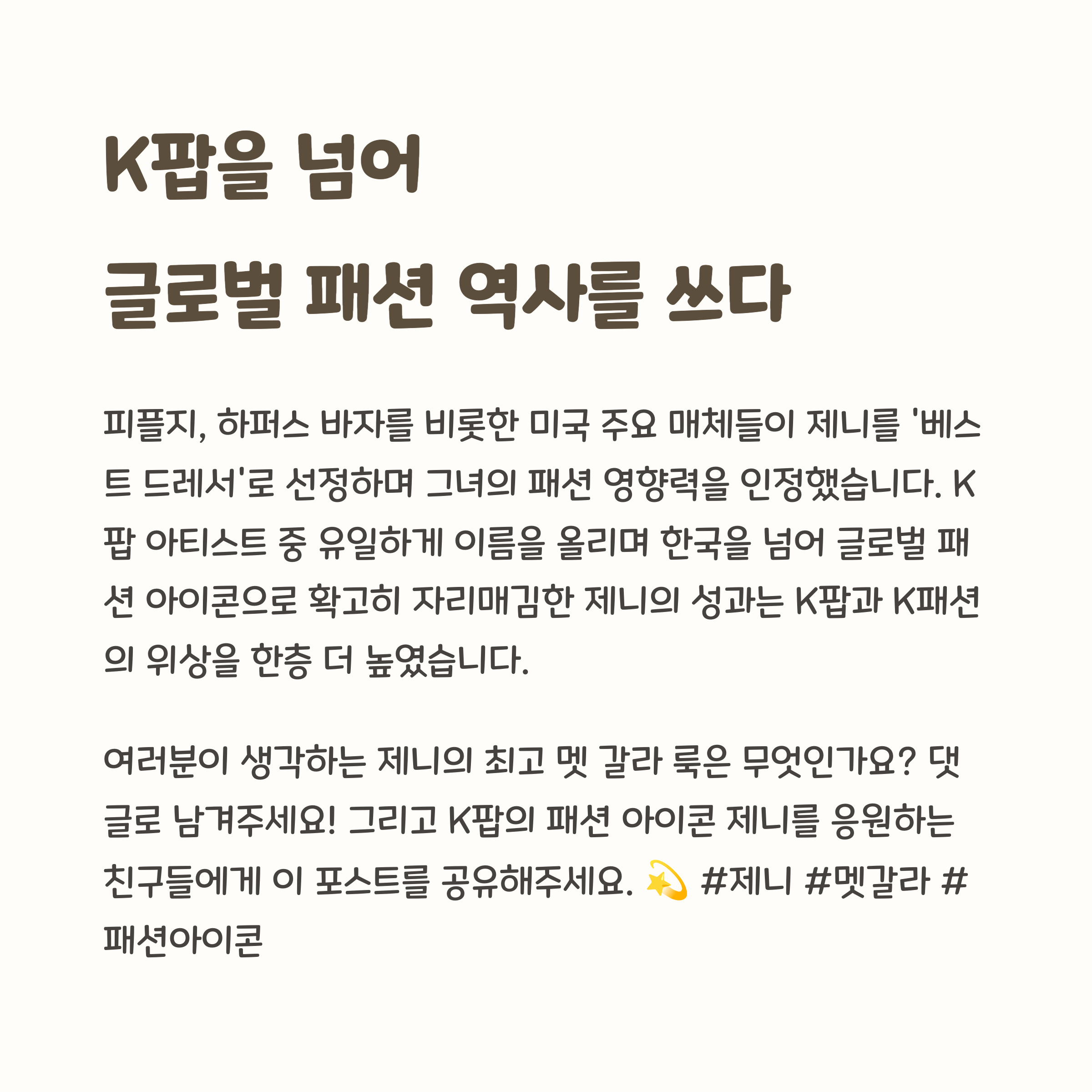 ✔K팝 아이콘 제니, 문화의 얼굴이 되다