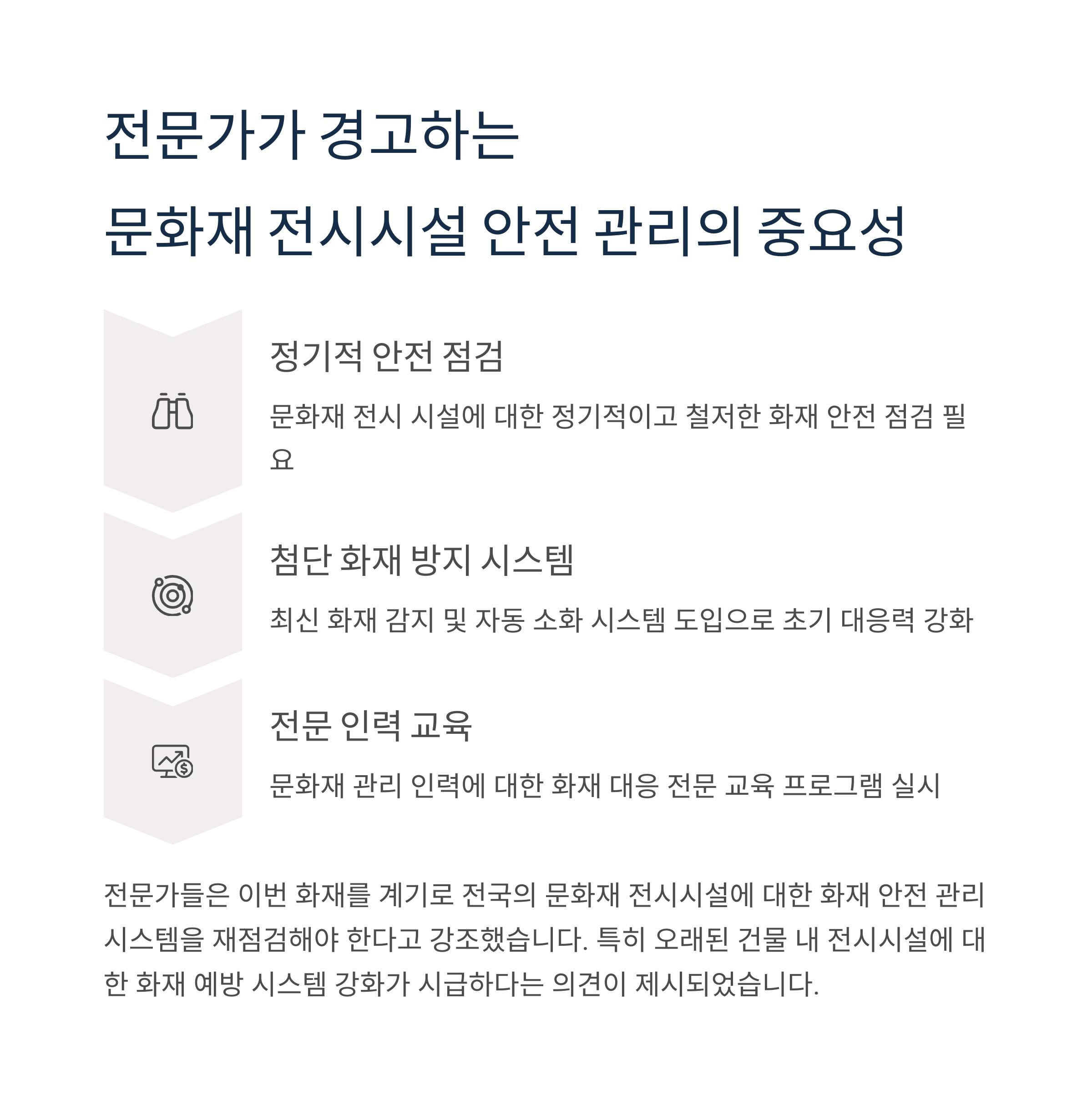• ✔ 문화재 전시관의 화재 대응 체계 점검 필요