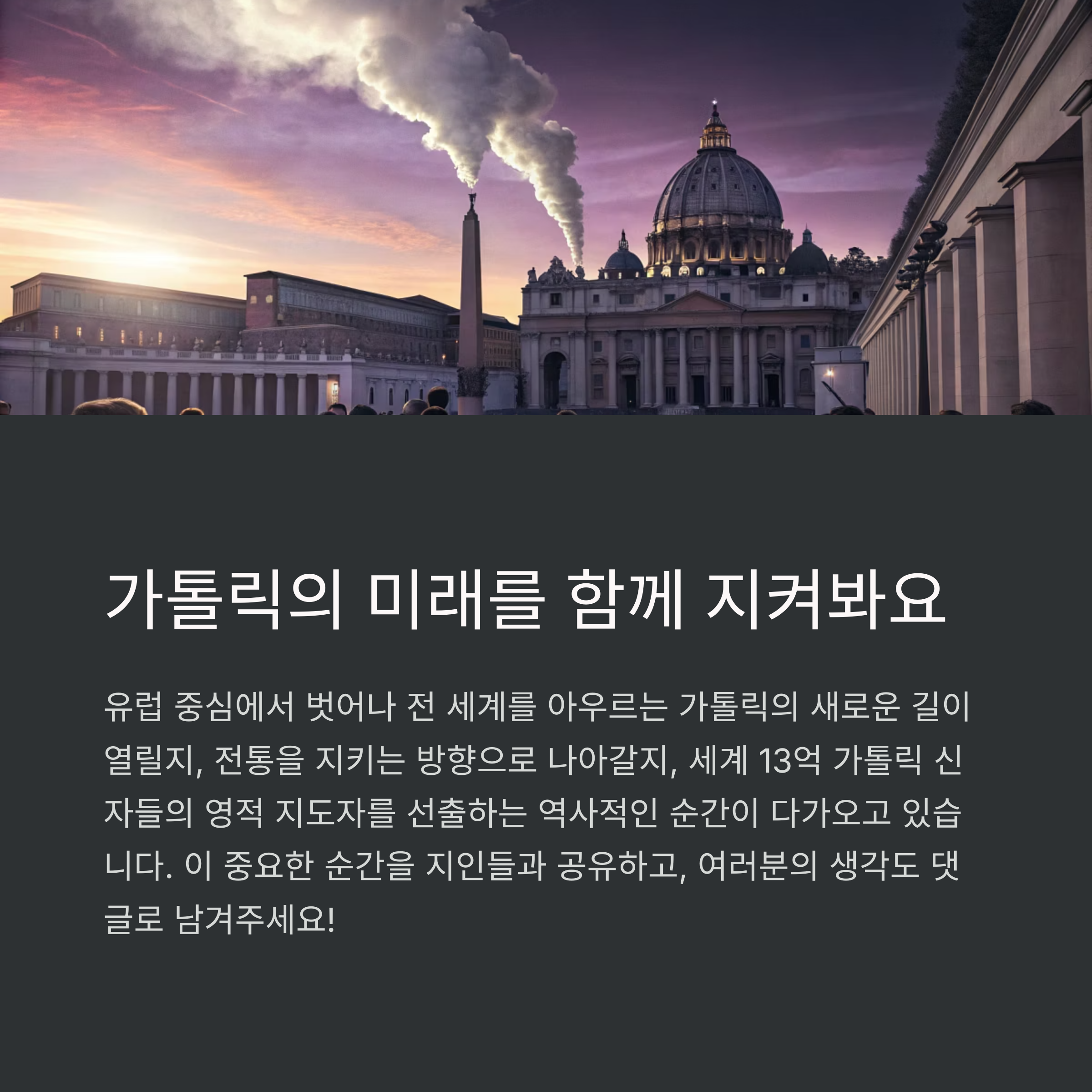 교황 선종이라는 역사적 전환점 앞에서, 우리는 단지 종교 지도자만을 기다리는 것이 아닙니다. 차기 교황은 인류와 지구, 평화와 다양성의 시대를 이끌 정치적·정신적 리더가 될 수 있기에 그의 국적, 성향, 목소리에 전 세계가 주목하고 있습니다. 프란치스코 교황의 유산을 이어갈지, 아니면 전환의 시대를 맞을지는 곧 있을 콘클라베에서 명확히 드러나겠죠. 당신은 어떤 교황을 원하시나요?