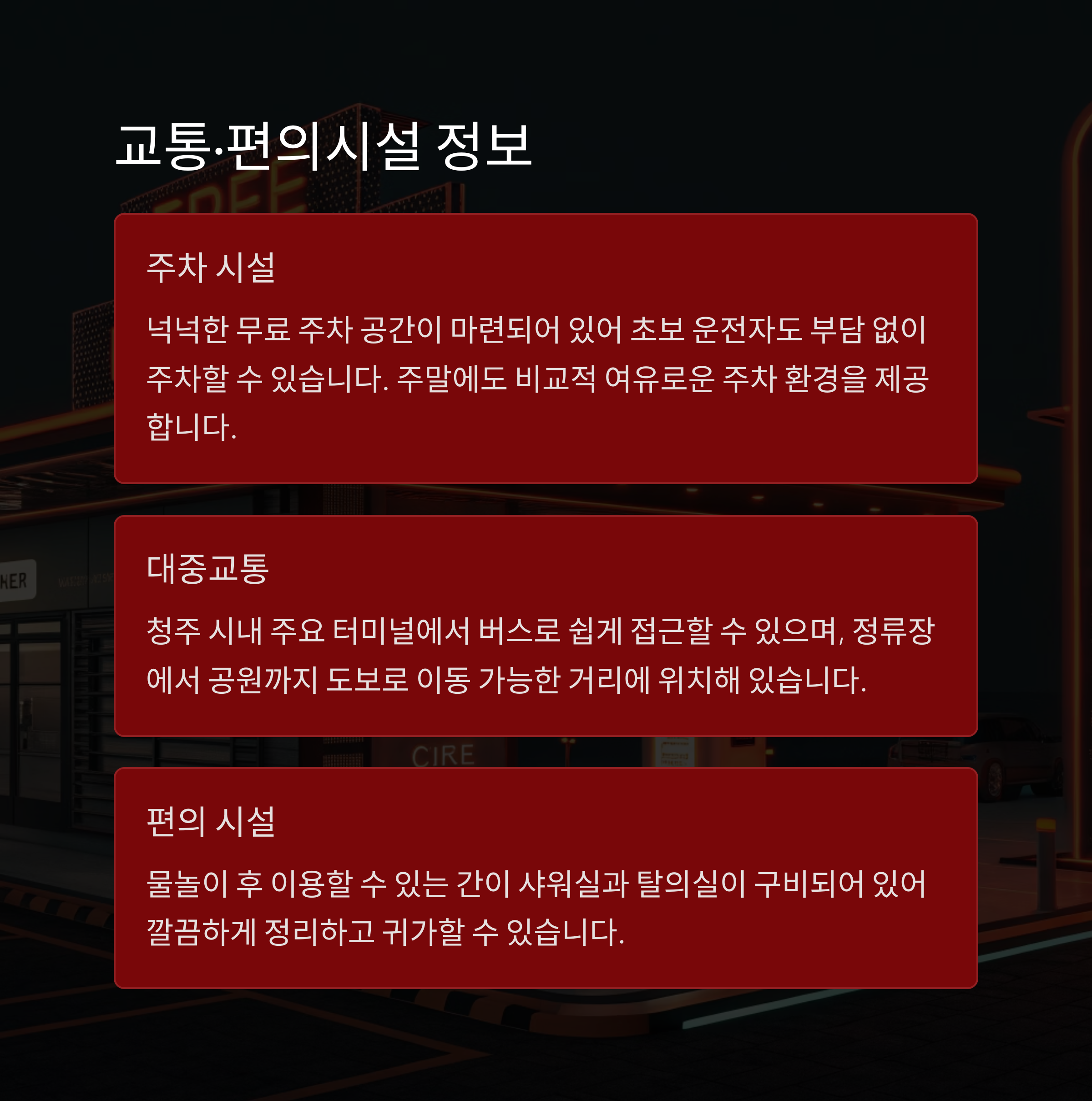 | 의무관리요원 | 항시 상주하여 사고 예방 및 응급 상황 대응 가능 |