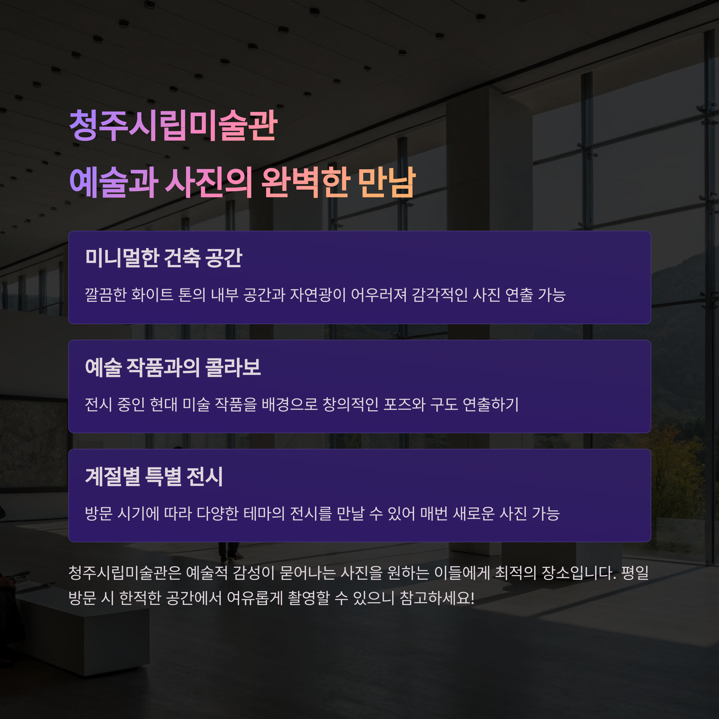 | 청주시립미술관 | 현대 미술 | 예술 감성 사진 |