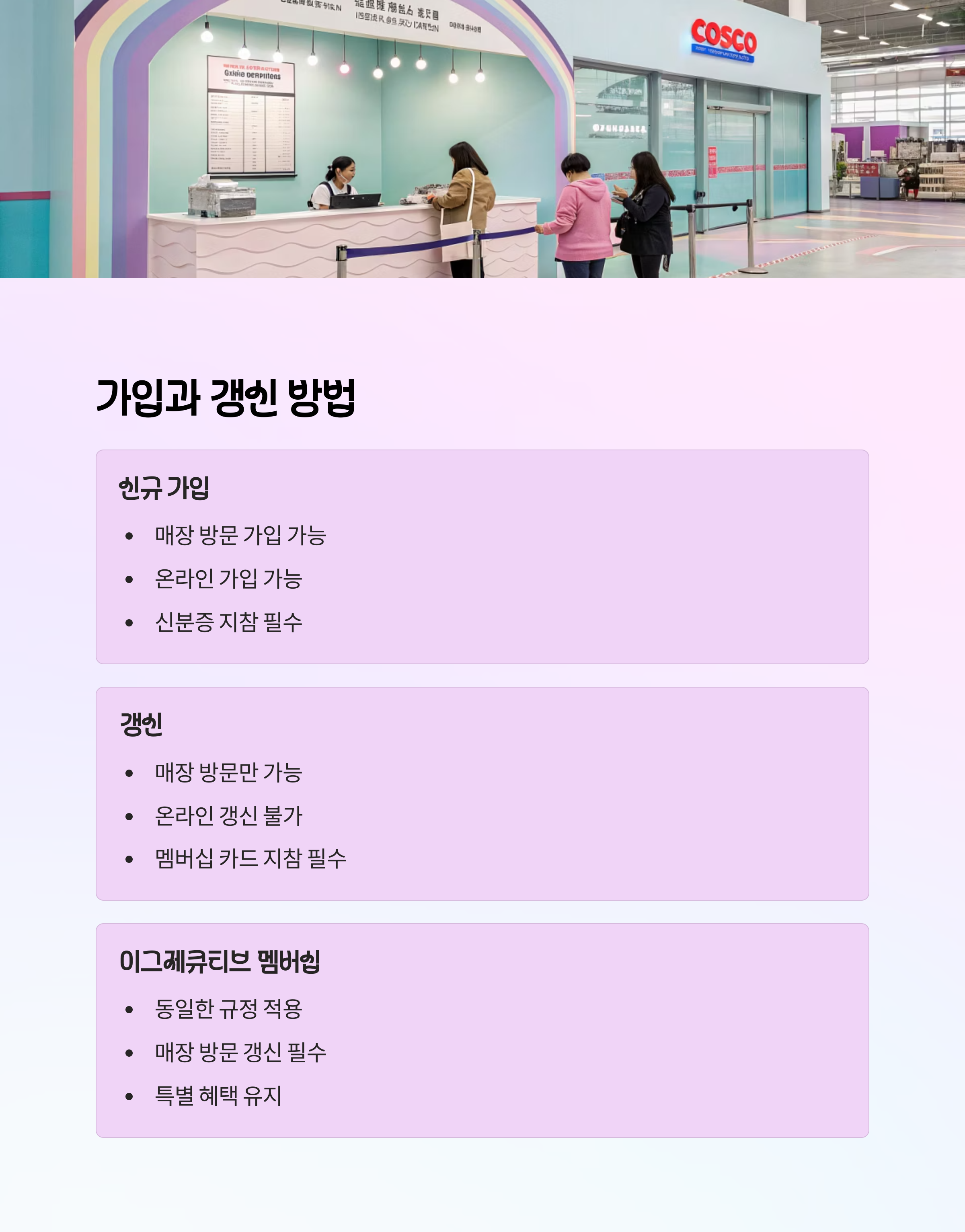 코스트코 회원가입은 오프라인과 온라인 모두 가능하지만, 갱신은 반드시 오프라인에서만 가능합니다.