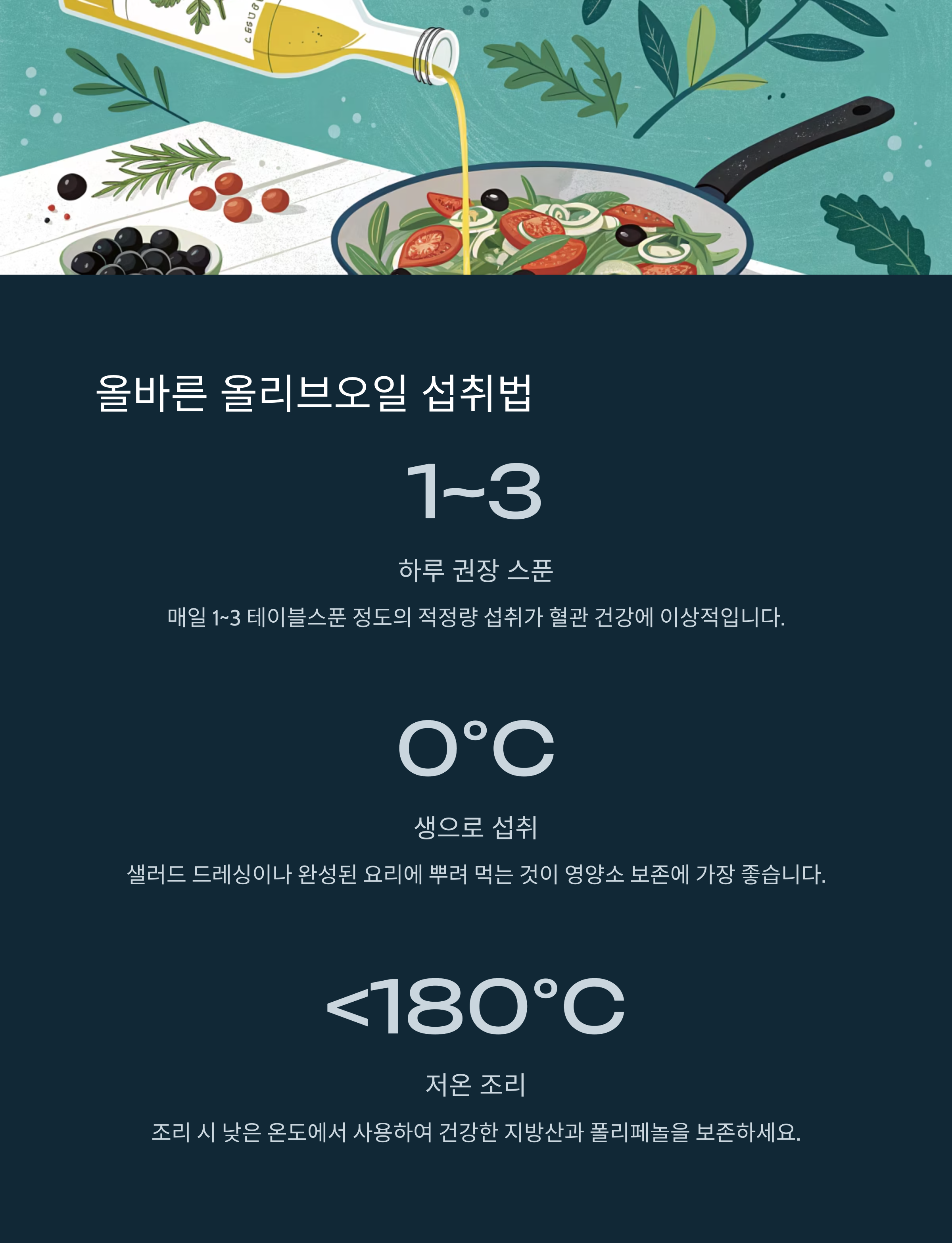 - 올리브오일은 약이 아닙니다. 하지만 식탁 위 작은 습관이 평생 건강을 지켜줄 수 있습니다.