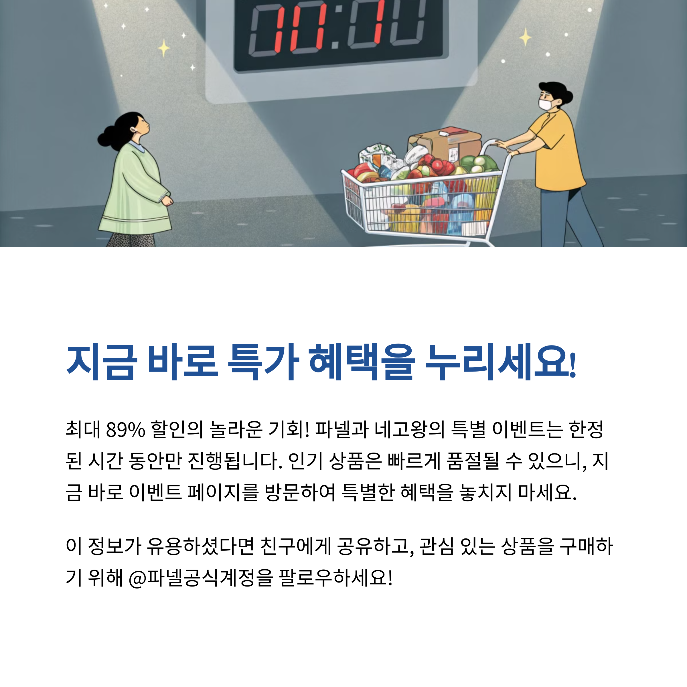 안녕하세요! 오늘은 파넬이 '네고왕'과 함께 준비한 역대급 특가 이벤트 소식을 전해드리려고 합니다. 요즘 인기 있는 뷰티 브랜드 '파넬'이 네고왕과 협업하여 파격적인 할인을 선보였다고 하는데요. 최대 89% 할인 혜택부터 다양한 사은품까지! 특별한 가격과 혜택을 놓치지 않도록 꼼꼼하게 알려드릴게요. 이번 기회에 평소 눈여겨보던 파넬 제품을 합리적인 가격으로 득템할 수 있는 절호의 찬스! 할인 적용 방법과 구매 시 유의사항까지 알차게 정리해드리니 끝까지 읽어보세요!