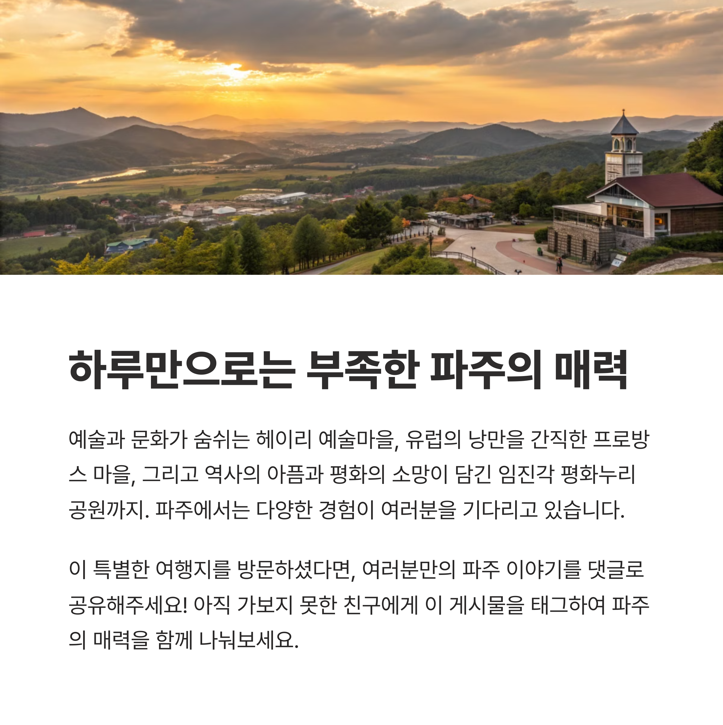 파주의 다채로운 매력을 느낄 수 있는 필수 여행 코스를 소개합니다.